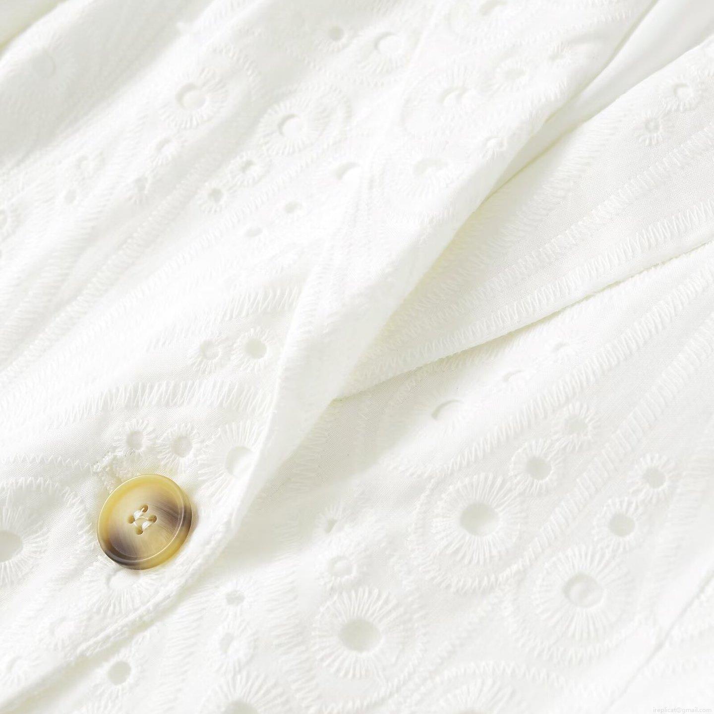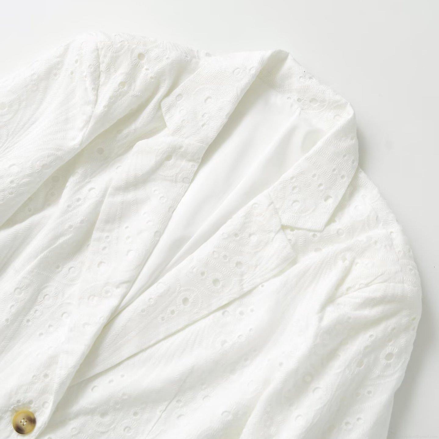 • Women's White Hollow Eyelet Embroidery Blazer Jacket 100% Polyester Long Sleeve Single Breasted Notch Lapel Autumn Elegant Streetwear Outwear