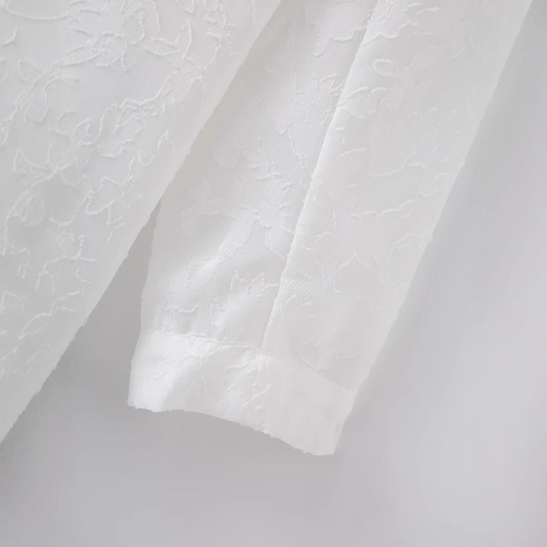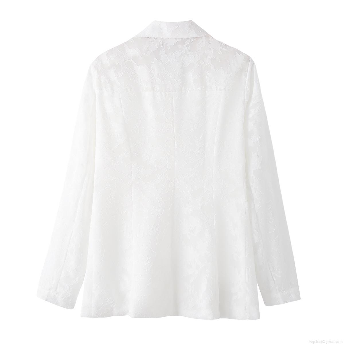 • Women's White Jacquard Chiffon Blazer Double Breasted Long Sleeve Lapel Semi Transparent Loose Streetwear Casual Outerwear Jacket For Summer Ladies