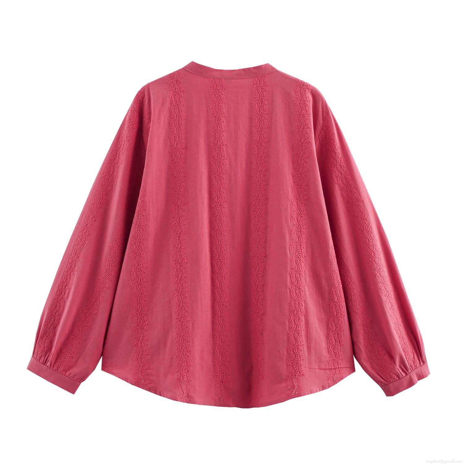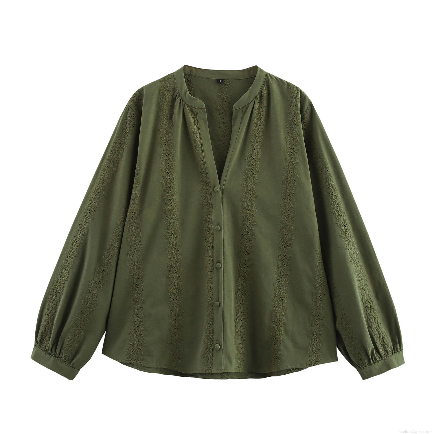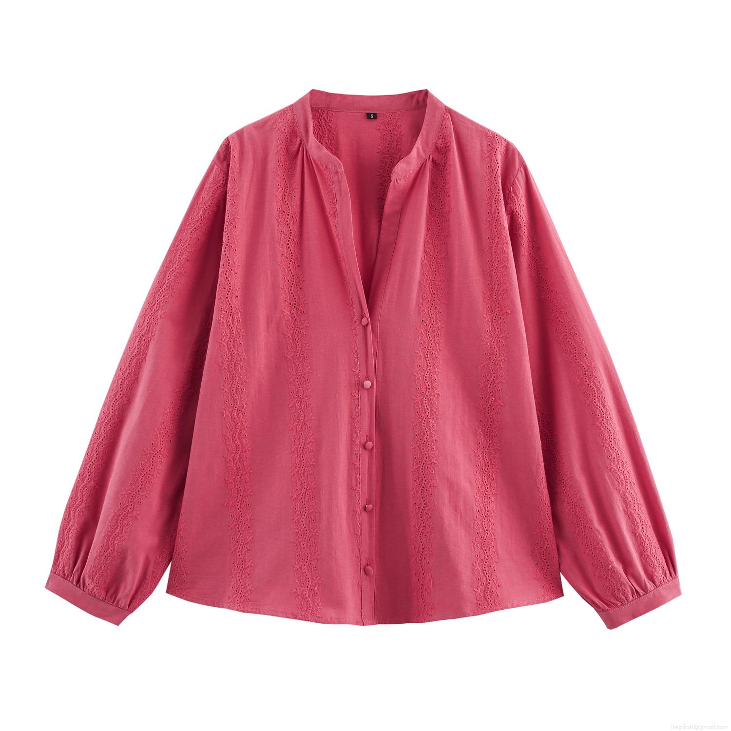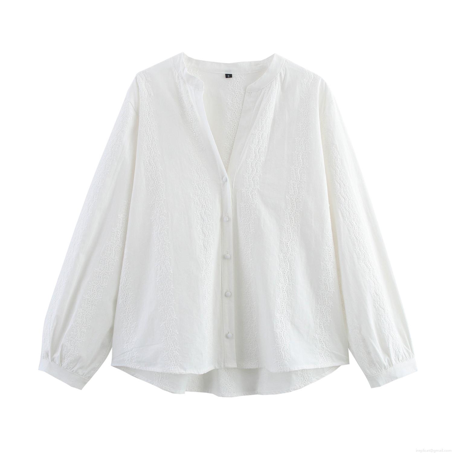 • Elegant Cotton Blend Hollow Out Embroidery Long Sleeve Blouse Women V Neck Button Up Shirt For Party Dating Lady Fashion Tops
