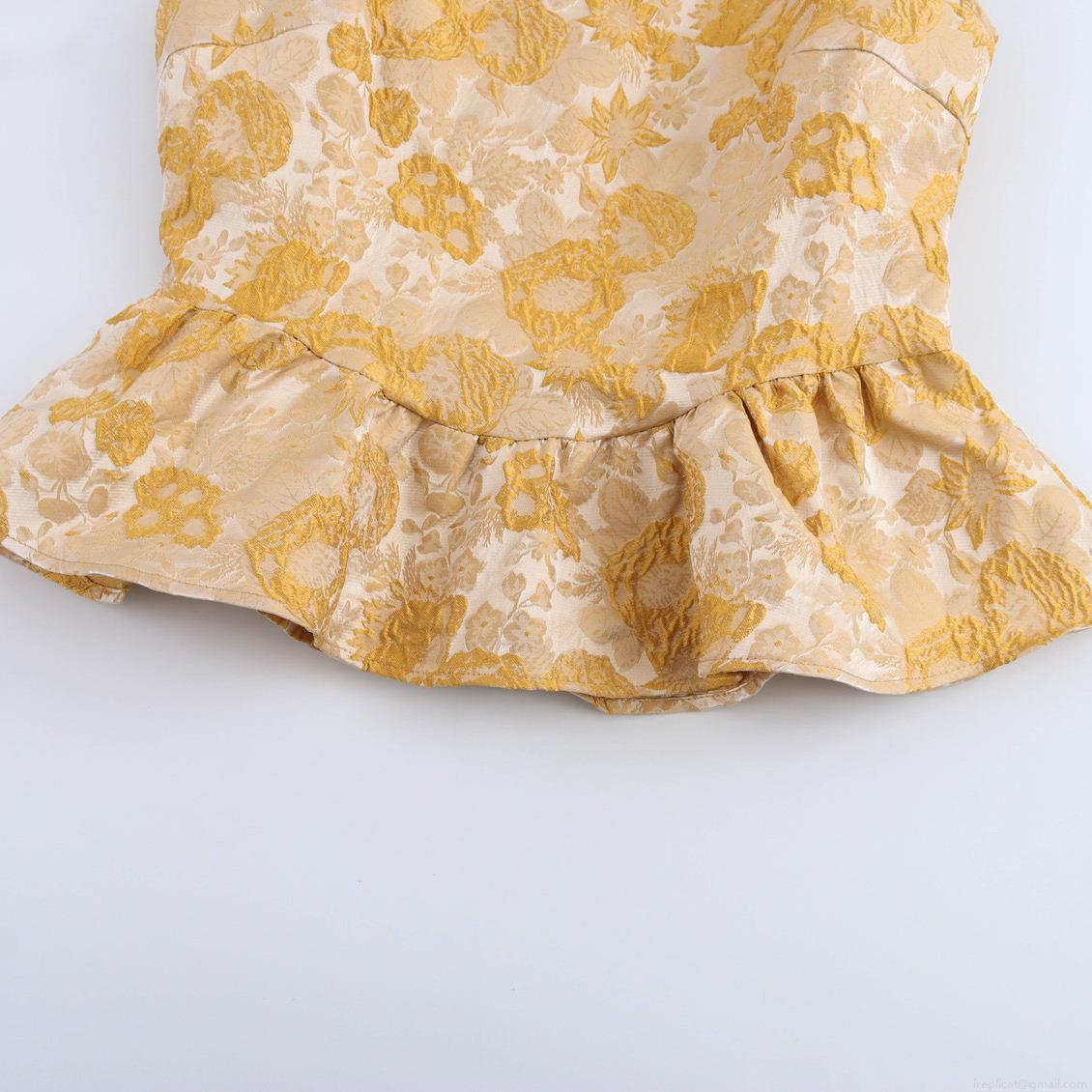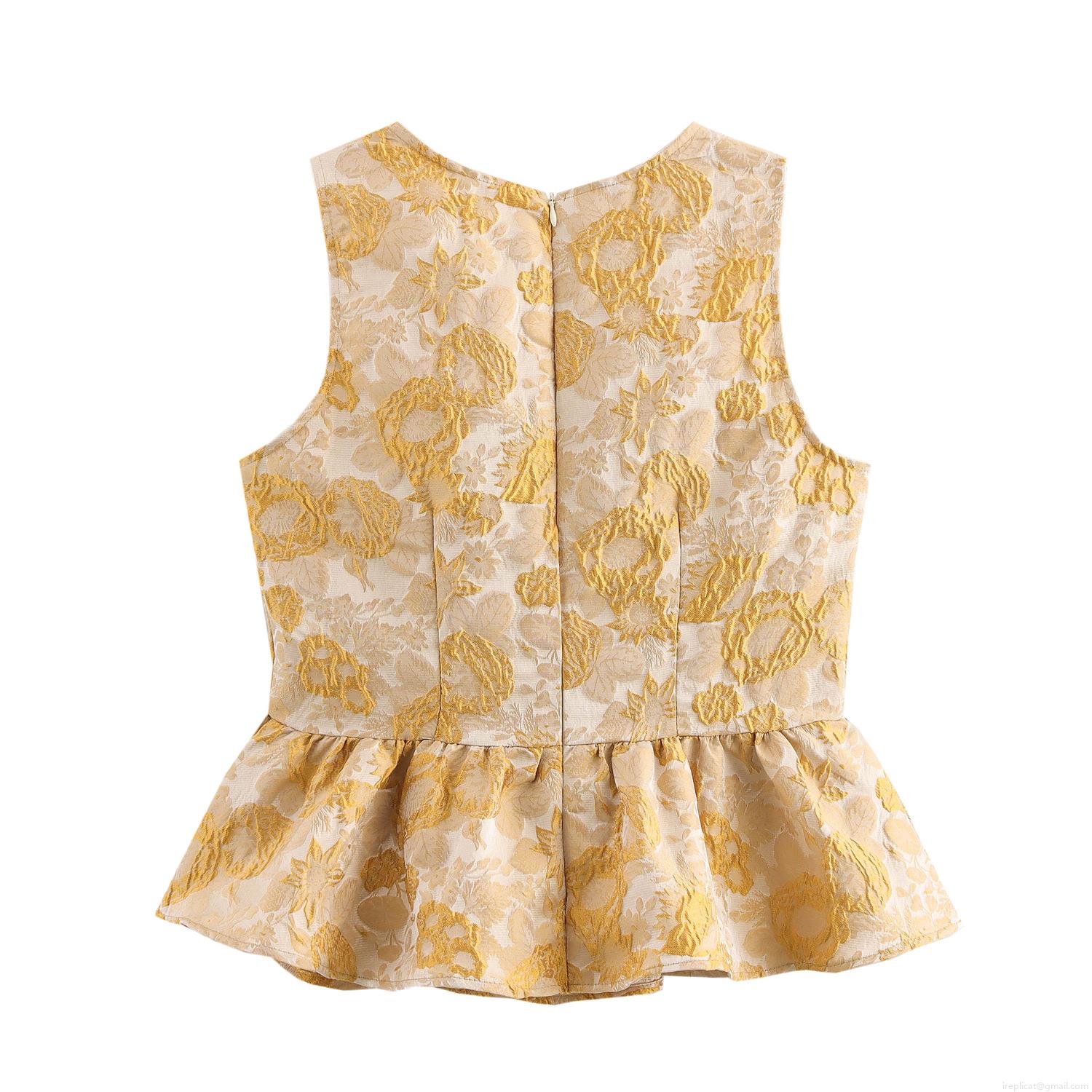 • Elegant Floral Jacquard Peplum Top Women Sleeveless Round Neck Ruffle Hem Blouse With Hidden Back Zipper Classic Western Style Summer Party Shirt