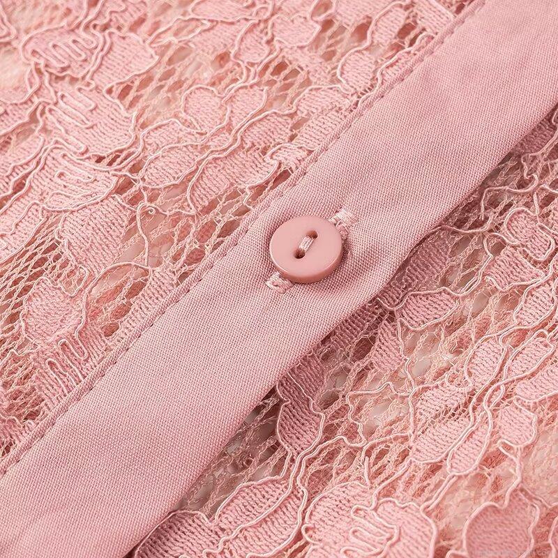 • Elegant Floral Lace Long Sleeve Blouse Women Sexy Sheer Polo Collar Button Down Shirt Top Fashion Party Wear Black Pink