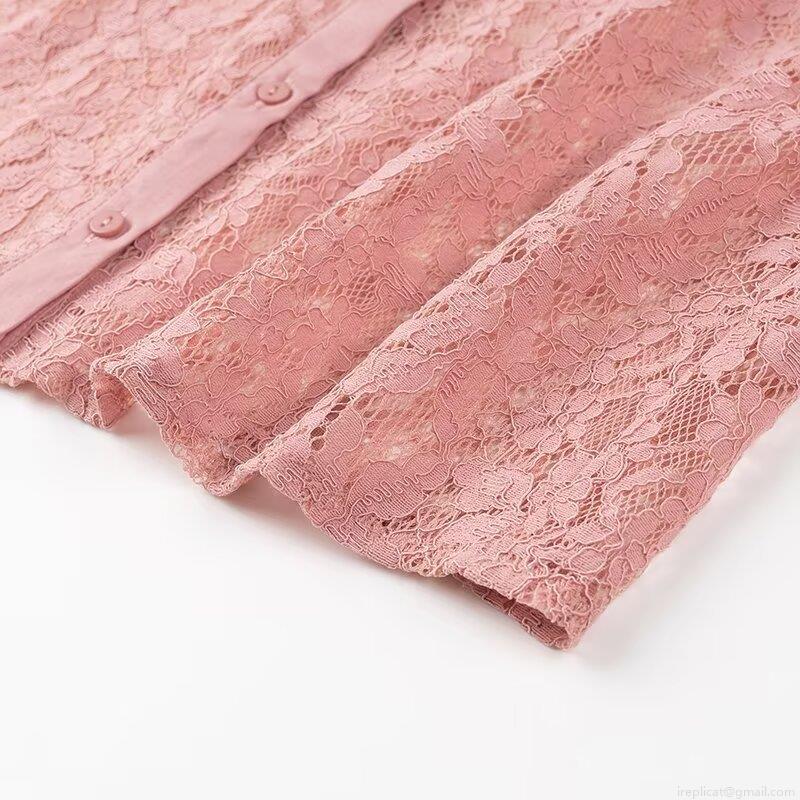 Elegant Floral Lace Long Sleeve Blouse Women Sexy Sheer Polo Collar Button Down Shirt Top Fashion Party Wear Black Pink