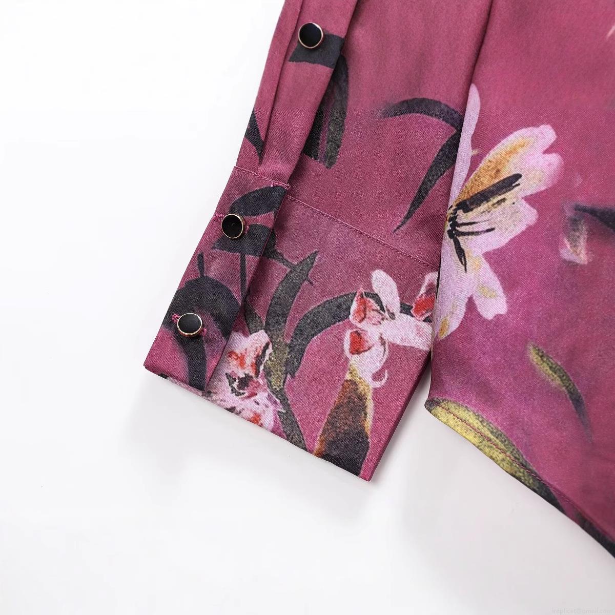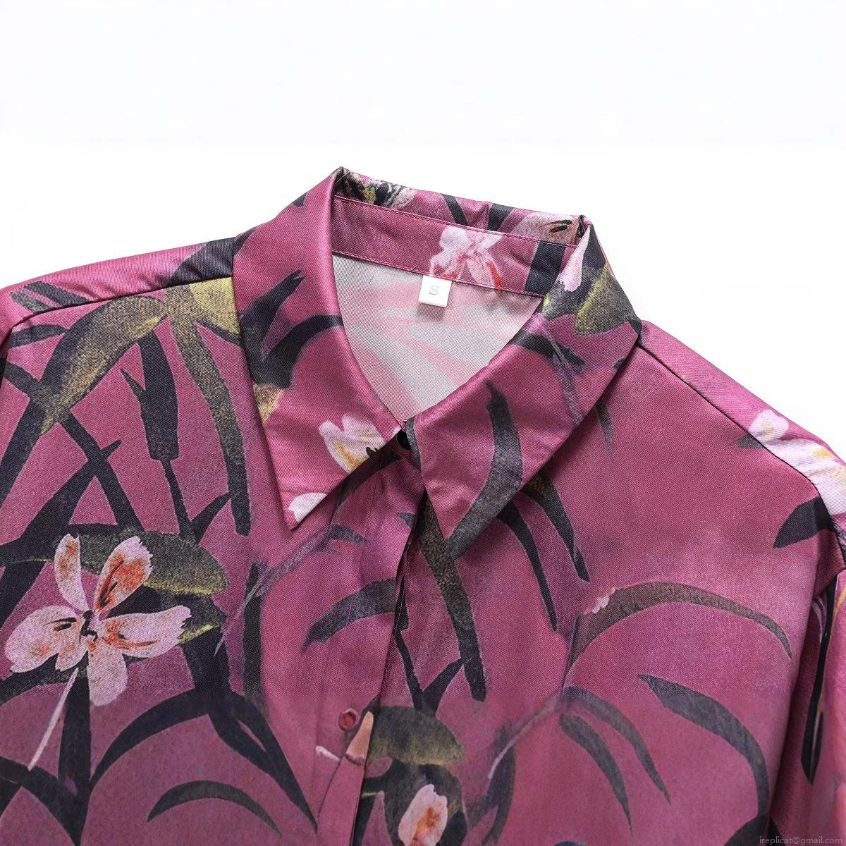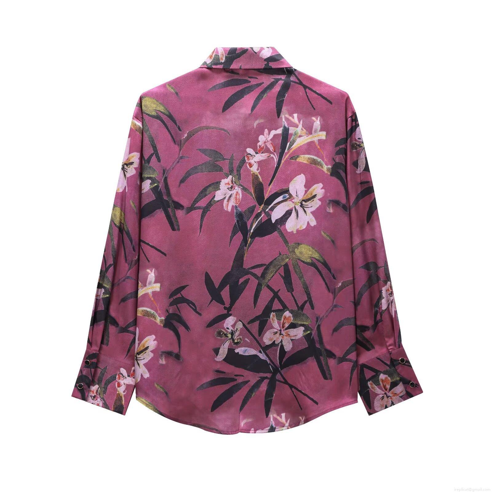 • Elegant Floral Print Satin Blouse For Women Long Sleeve Lapel Neck Button Down Polyester Shirt Office Lady Casual Fashion Tops