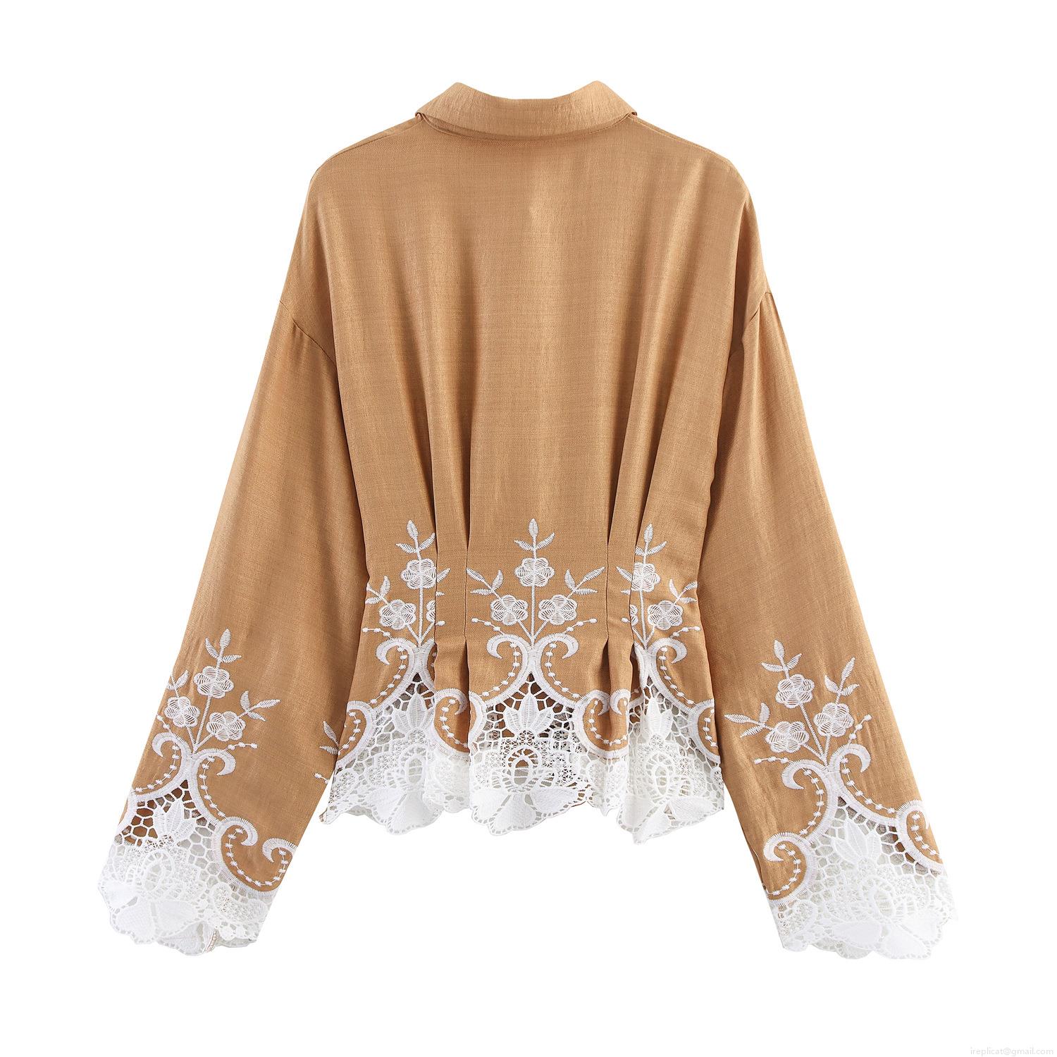 • Elegant Lace Patchwork Women Long Sleeve Shirt With Belt Lapel Button Down Puff Sleeve Blouse For Women Commute Office Fashion Solid Color Polyester Top