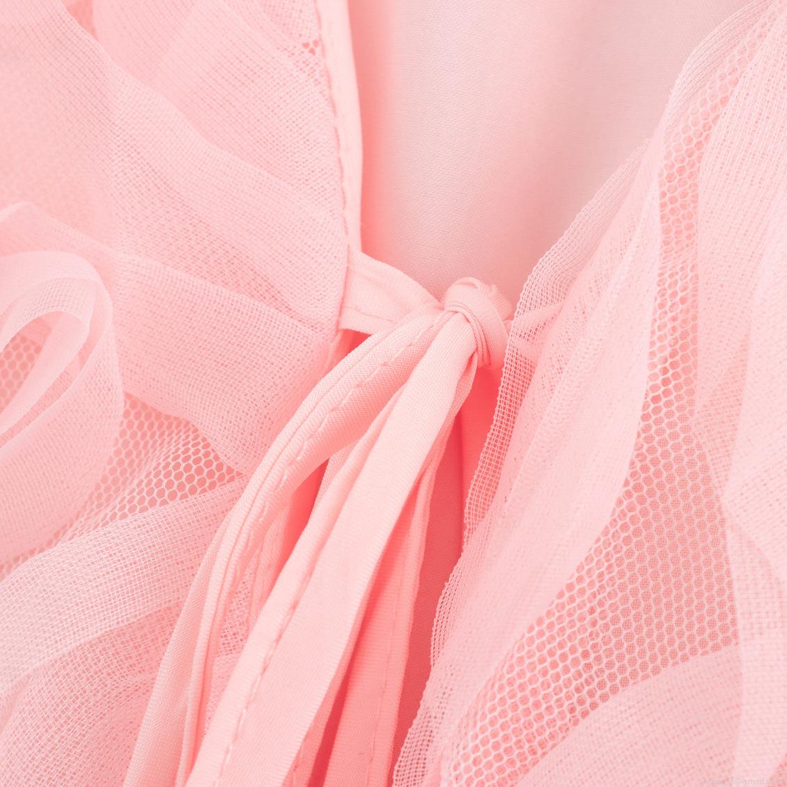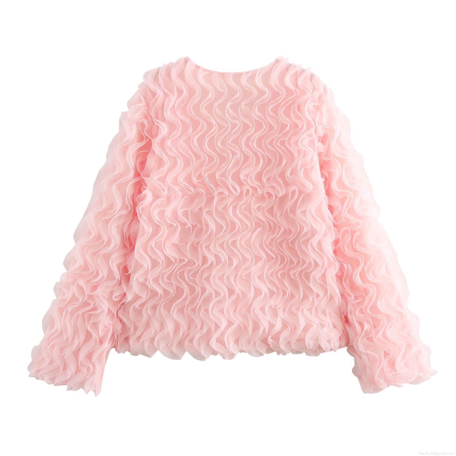 Elegant Pink Lace Mesh Blouse Women Sweet 3D Ripple Ruffle V-Neck Tie-Up Long Sleeve Top For Wedding Party Guest Romantic Celebrity Style