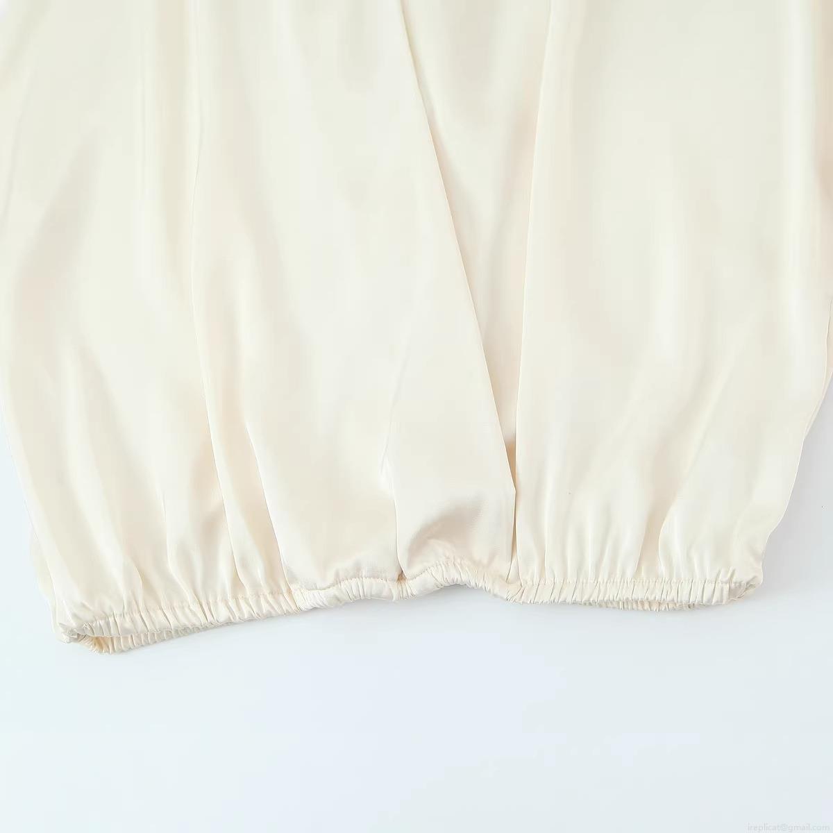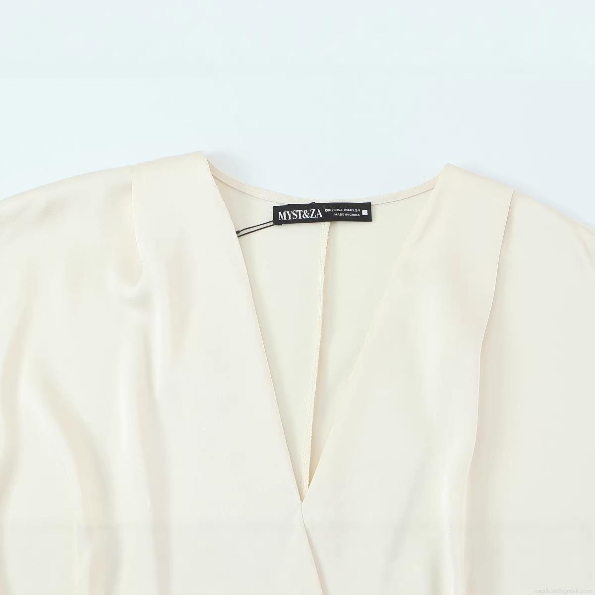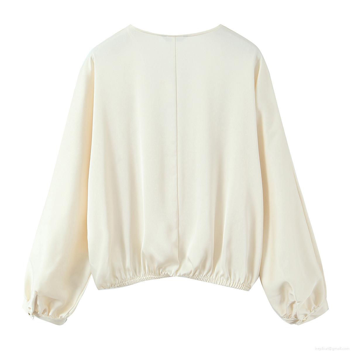 • Elegant Satin V-Neck Blouse For Women Solid Color Long Sleeve Button Up Shirt Office Work Chic Formal Tops