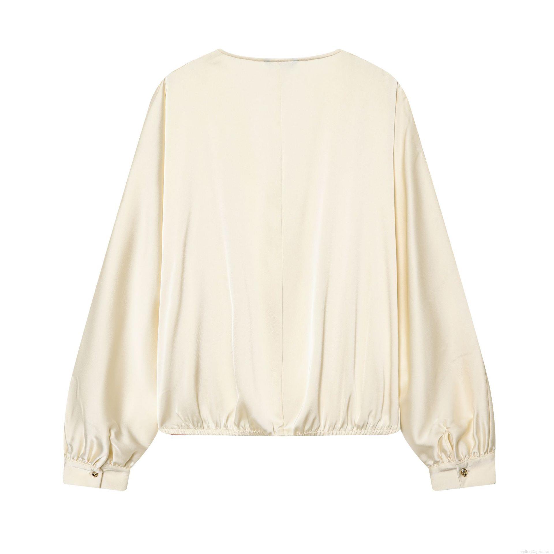 Solid Color, Satin Finish, Elastic Hem, Ruffled Cuffs, Cross-over Collar