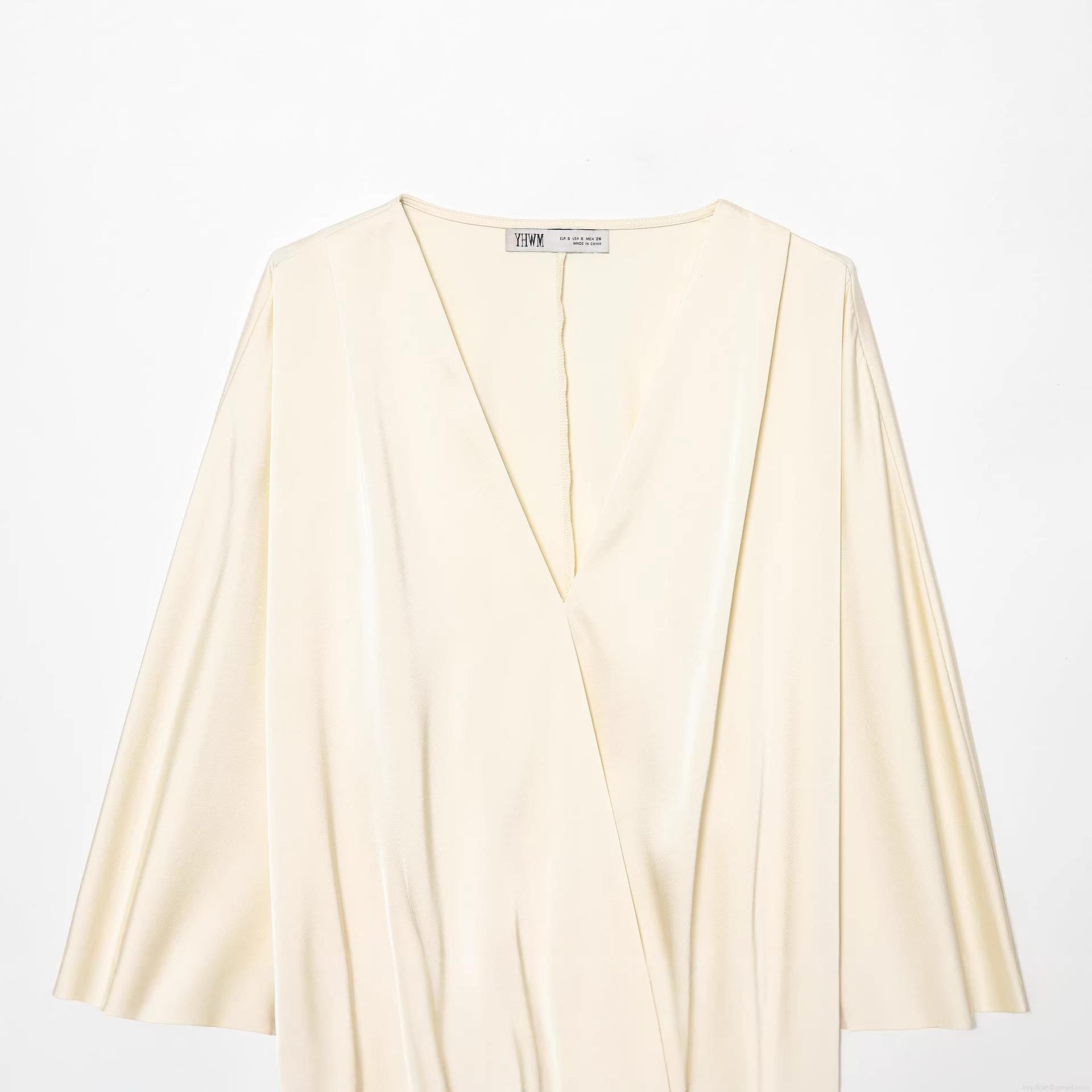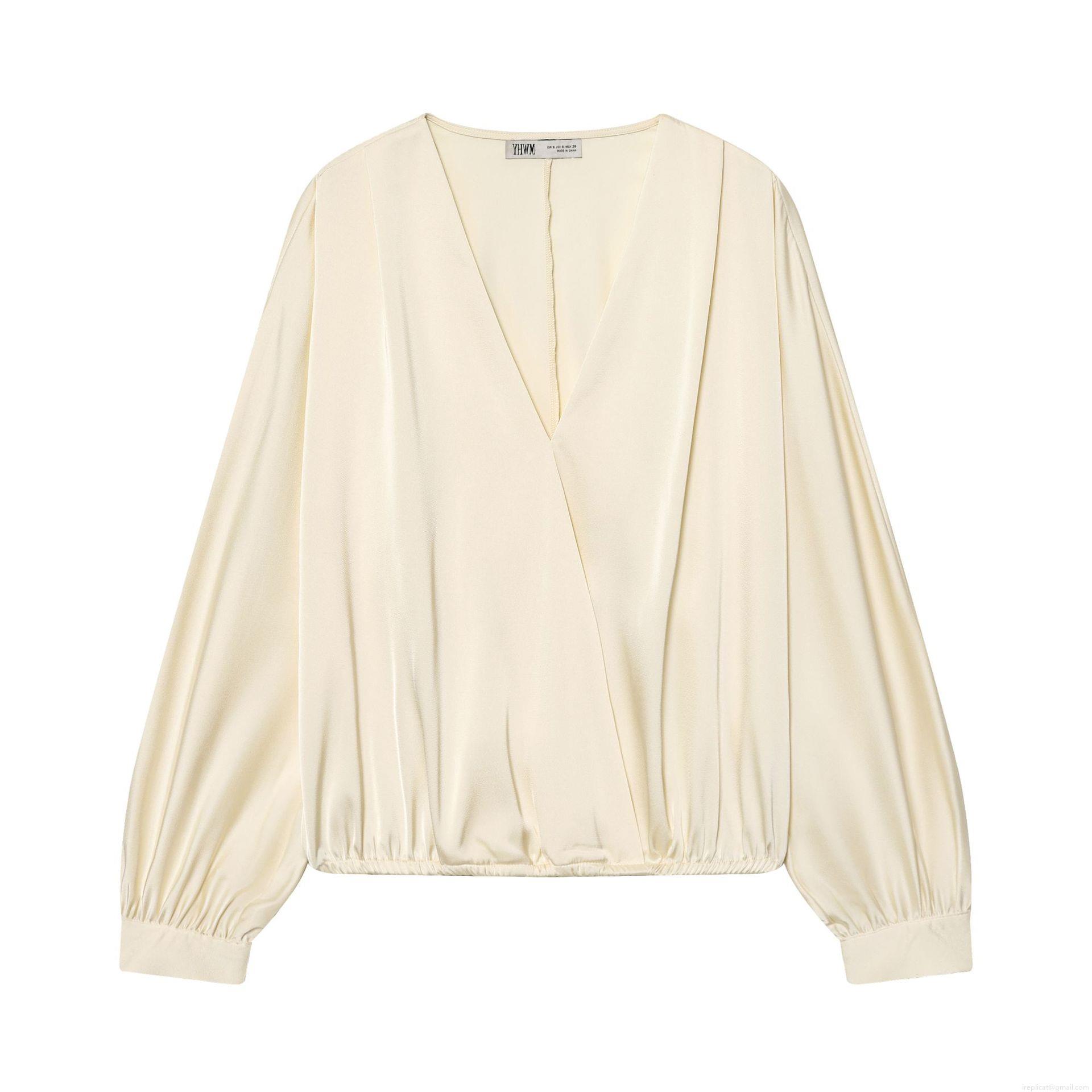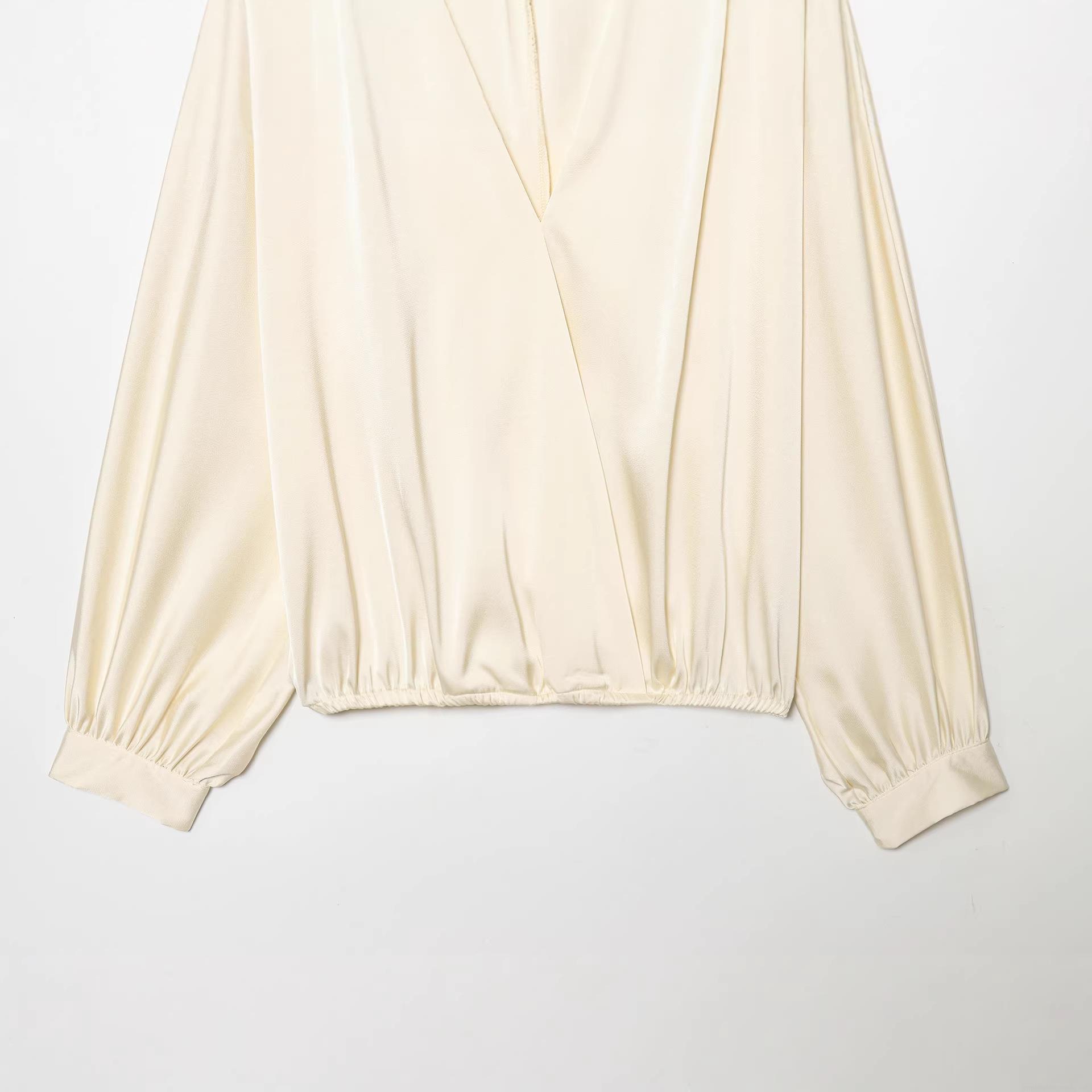• Elegant Satin Women's Blouse V-Neck Wrap Cross Over Long Sleeve Shirt Champagne Silky Smooth Lightweight Top For Casual Party Office Lady Fashion