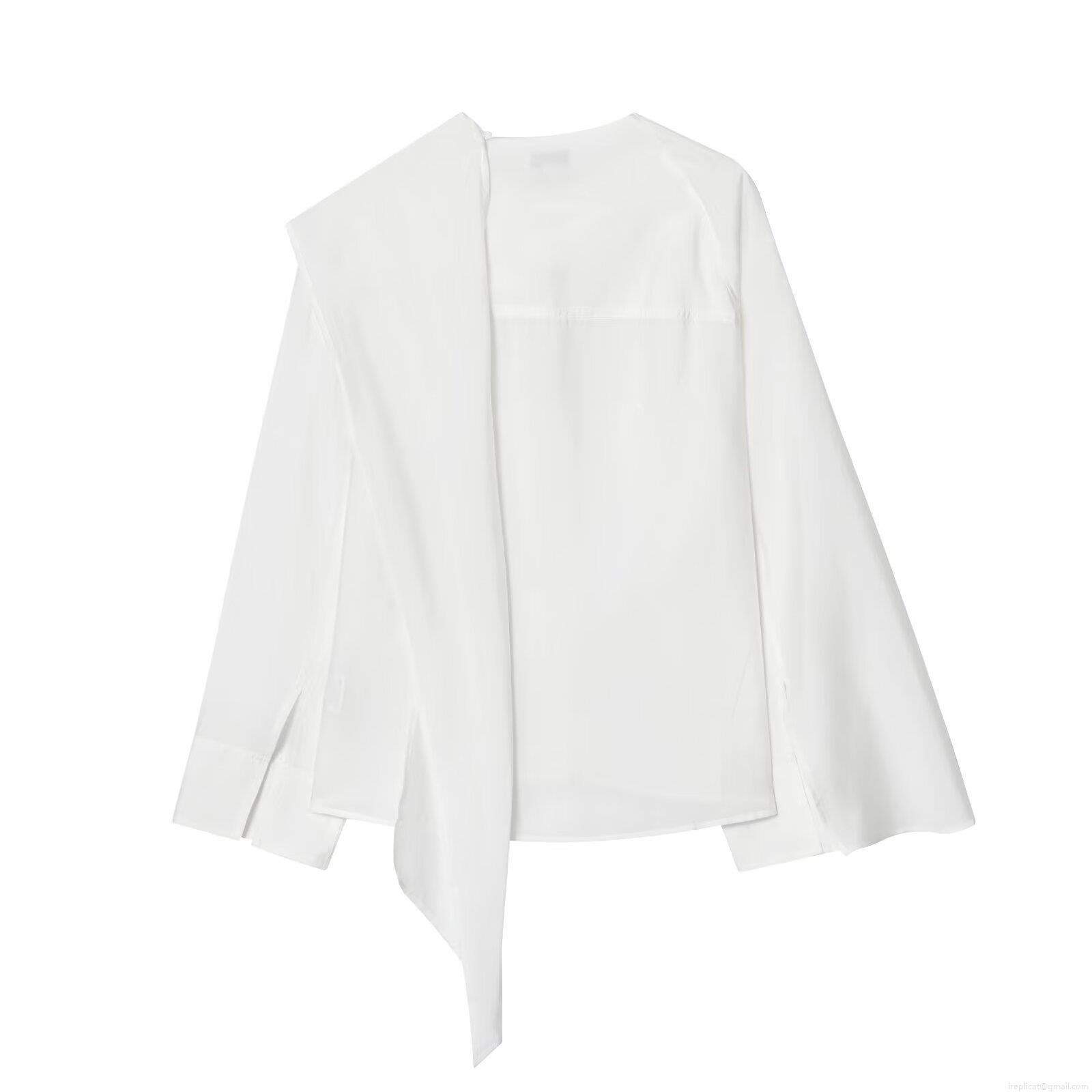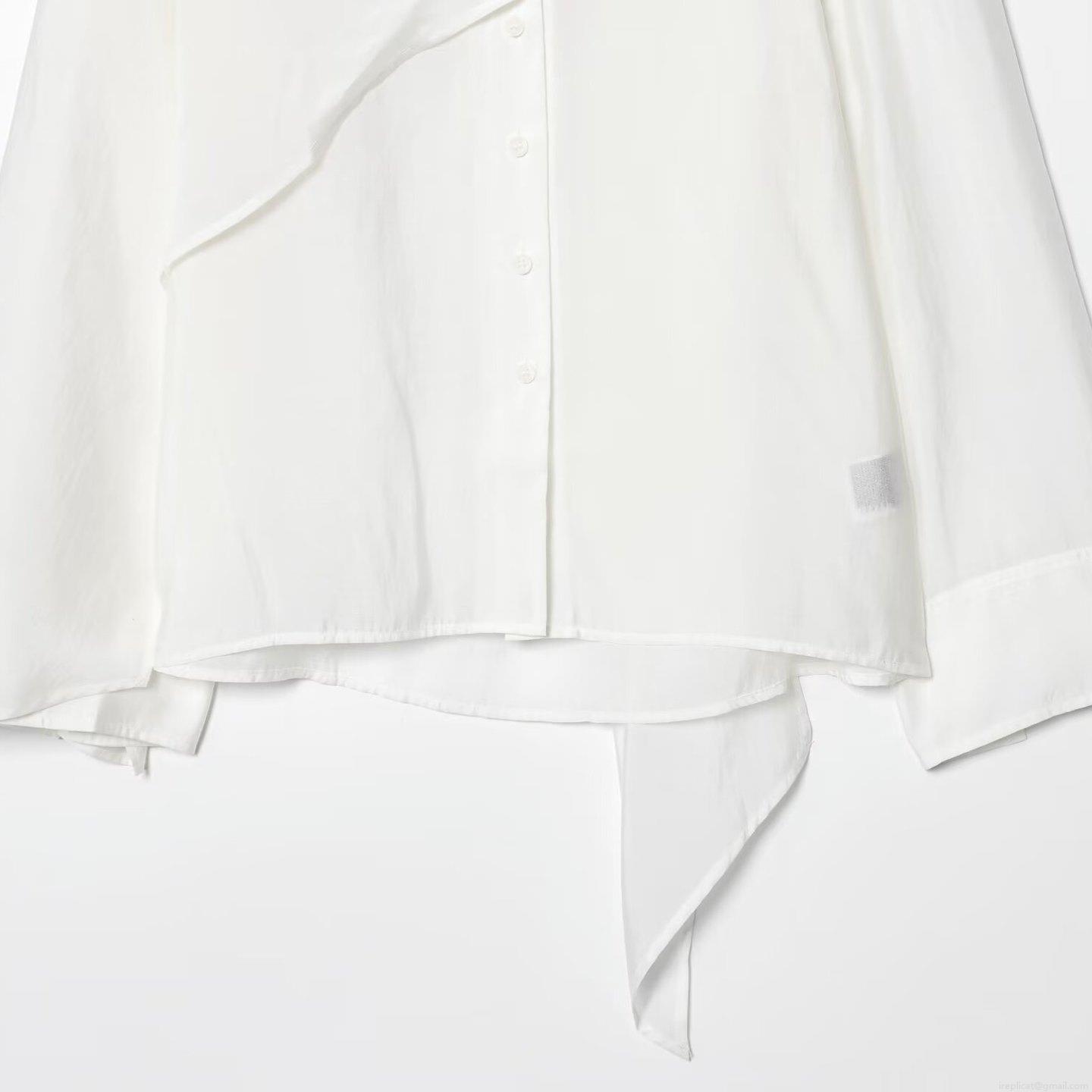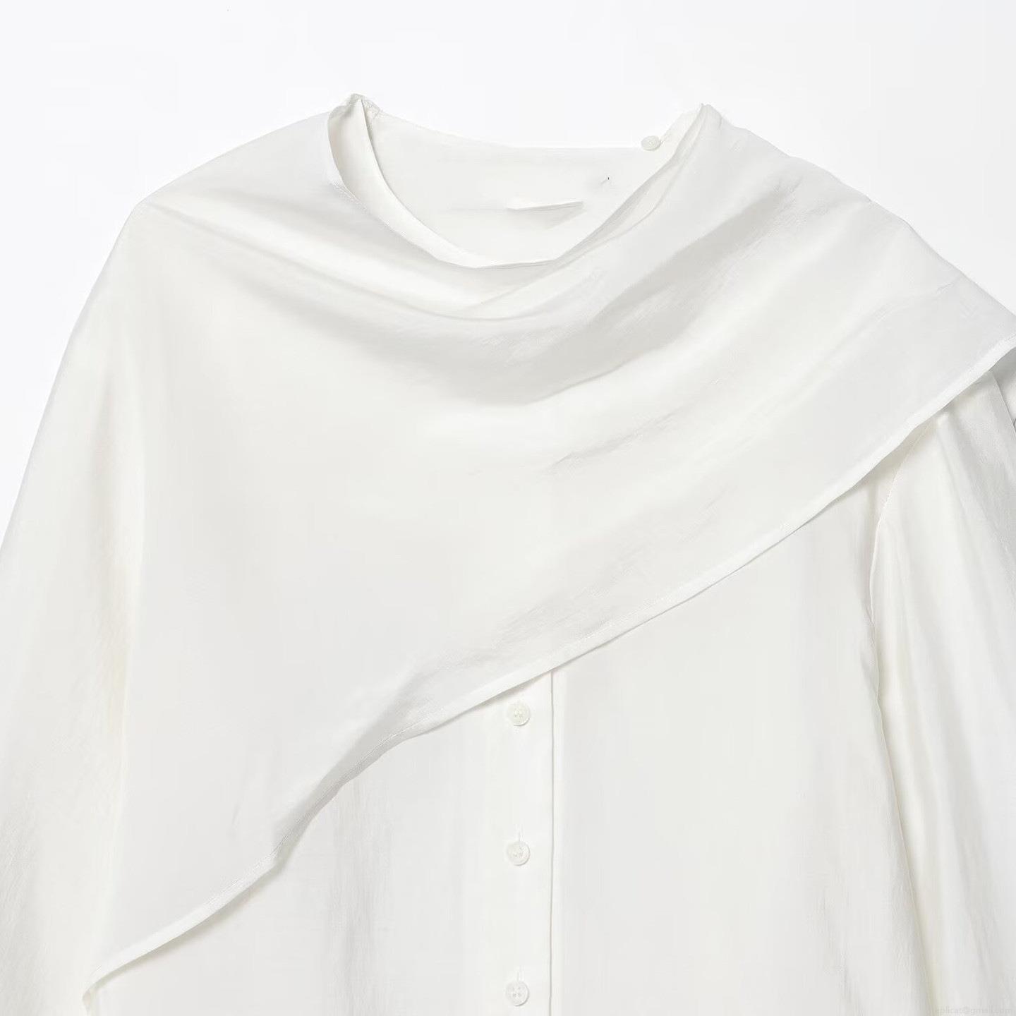 • Elegant White Long Sleeve Lurex Cotton Blouse For Women Cape Collar Layered Design Minimalist Commute Style Office Shirt Top