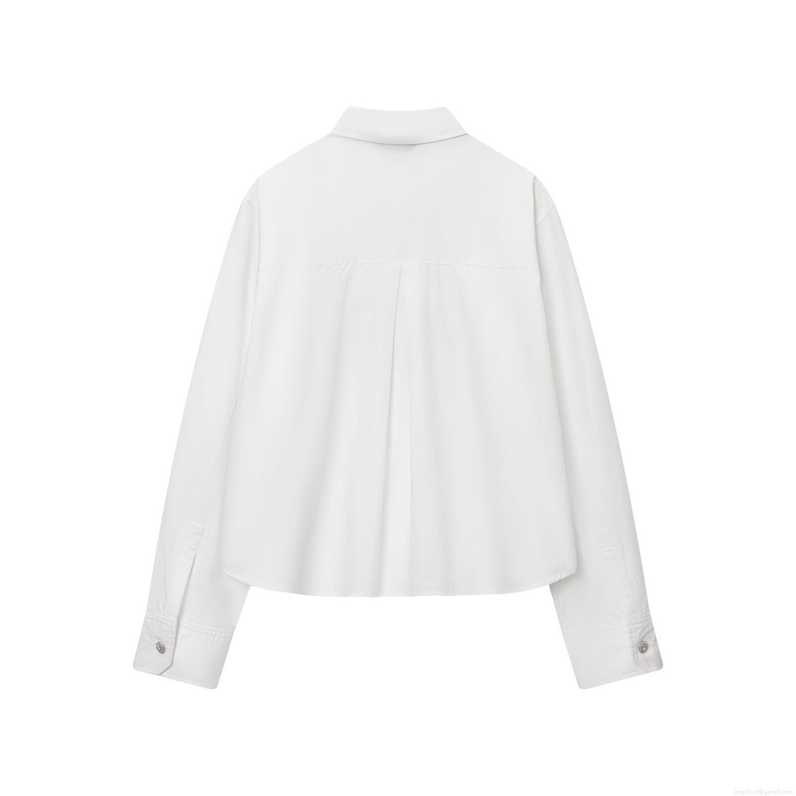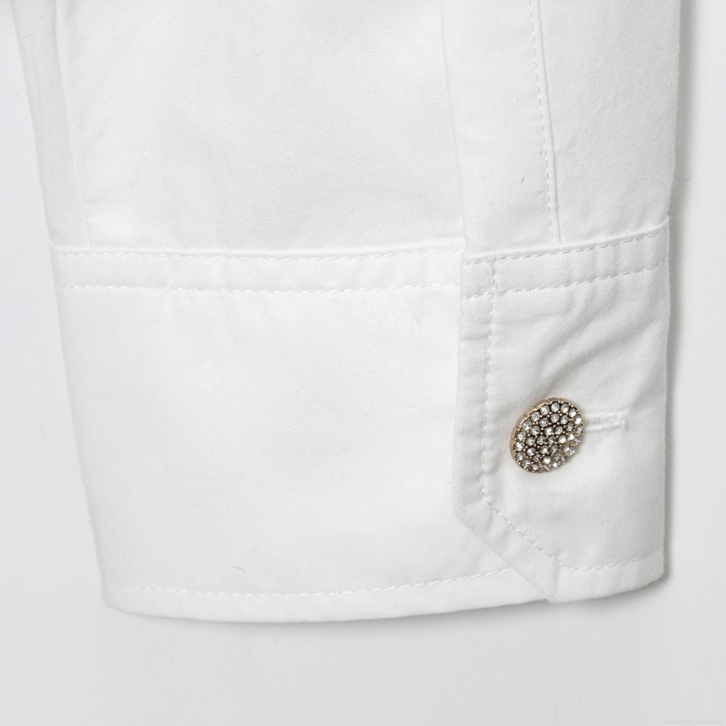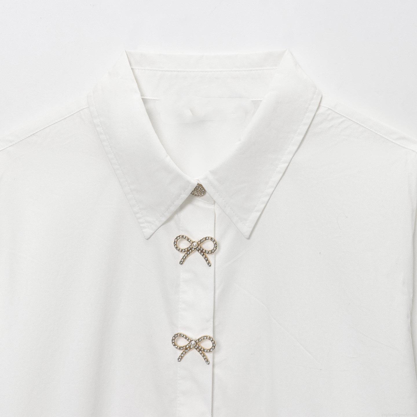 • Elegant White Poplin Long Sleeve Blouse For Women With Rhinestone Bow Jewelry Buttons Office Commute Work Shirt Spring Autumn Fashion