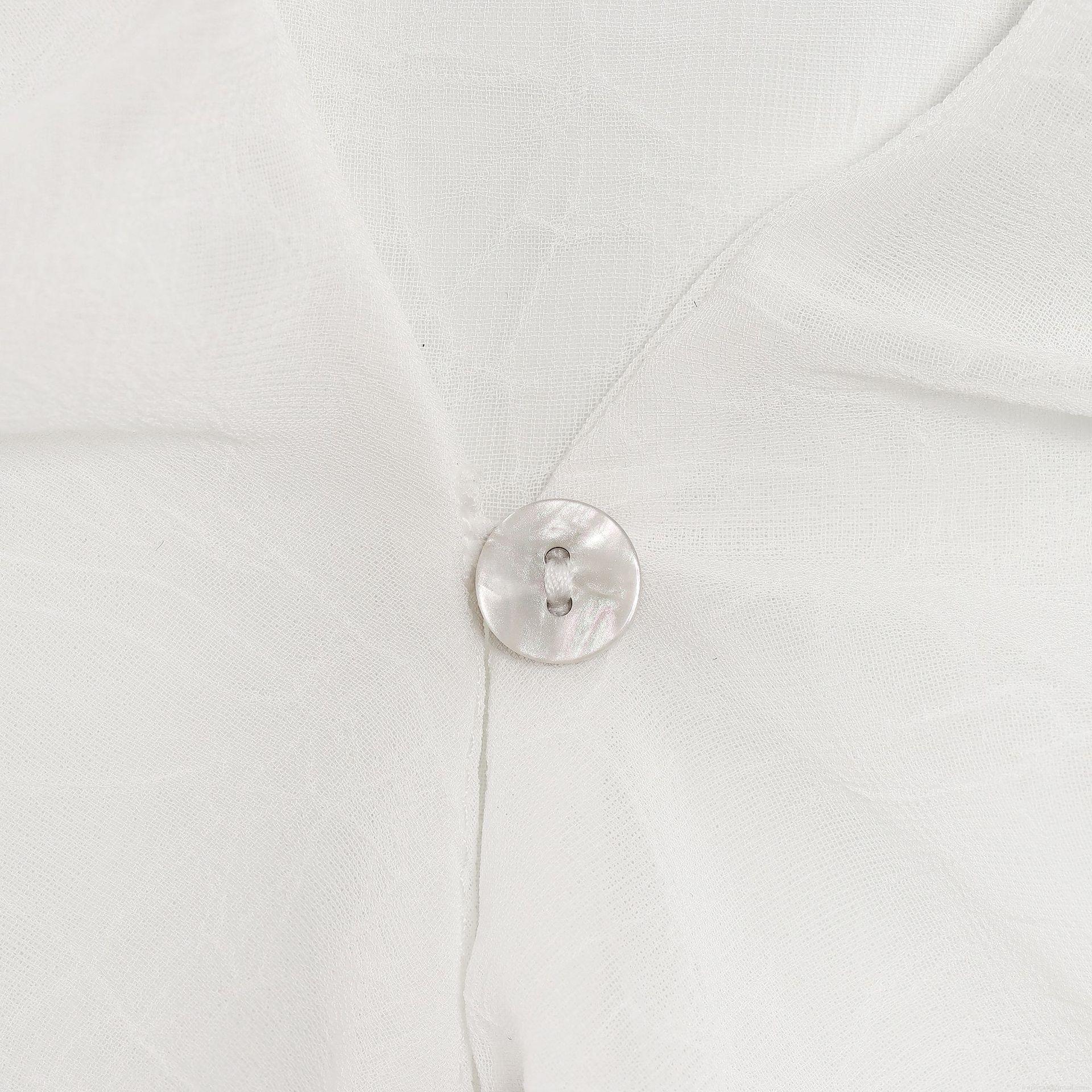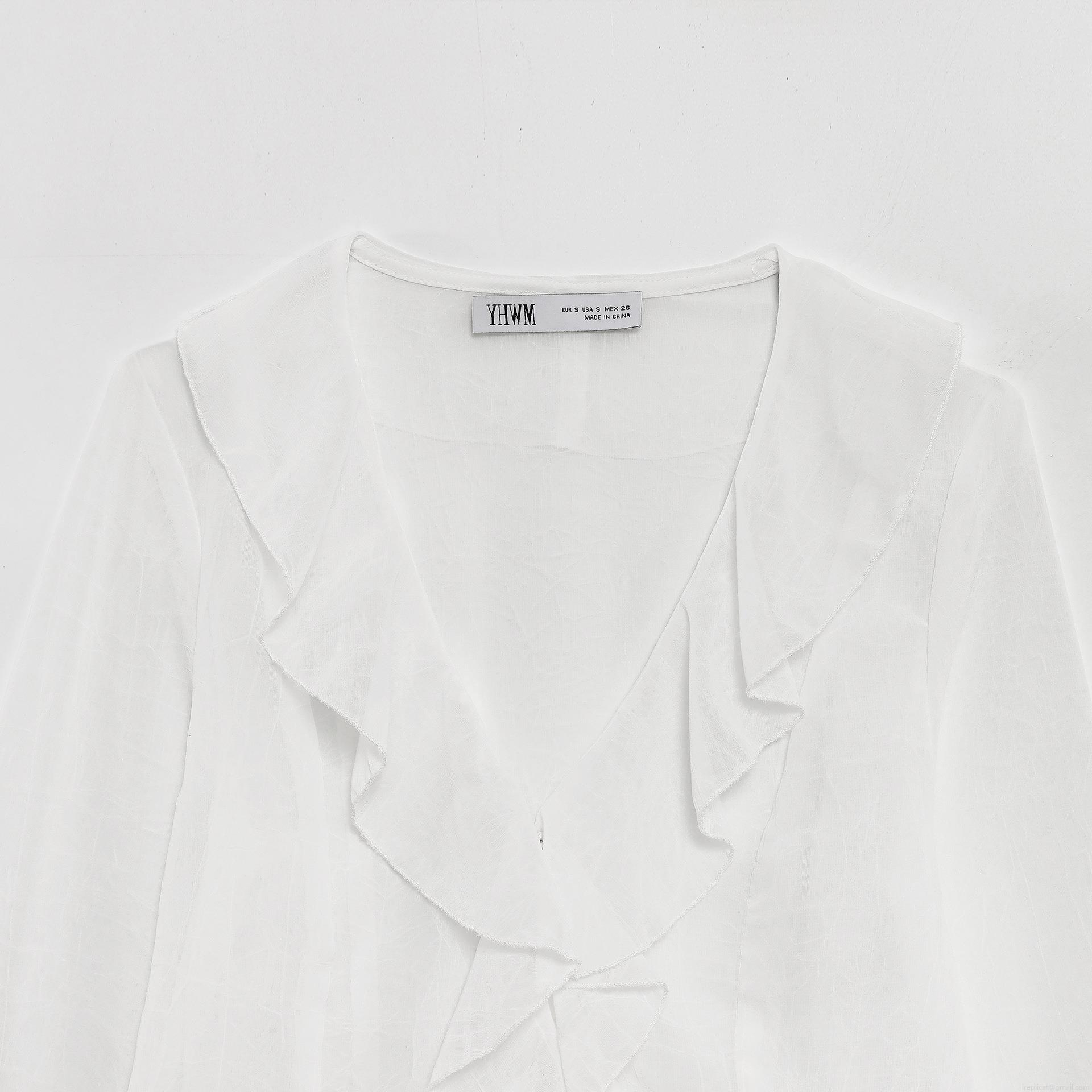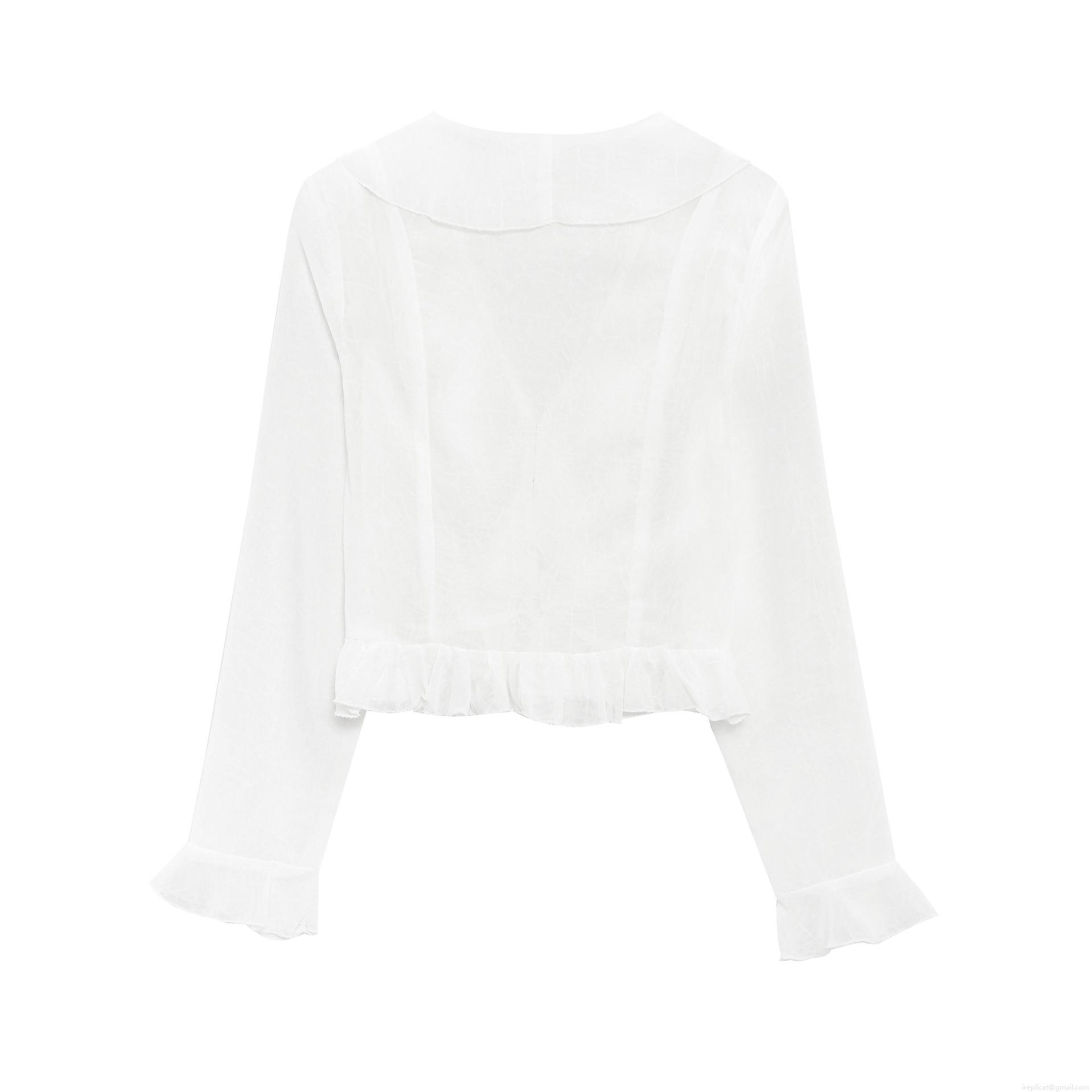 • Elegant White V-Neck Chiffon Blouse For Women Ruffle Long Sleeve Cropped Shirt Fashion Sweet Solid Color Polyester Tops Ladies Daily Wear