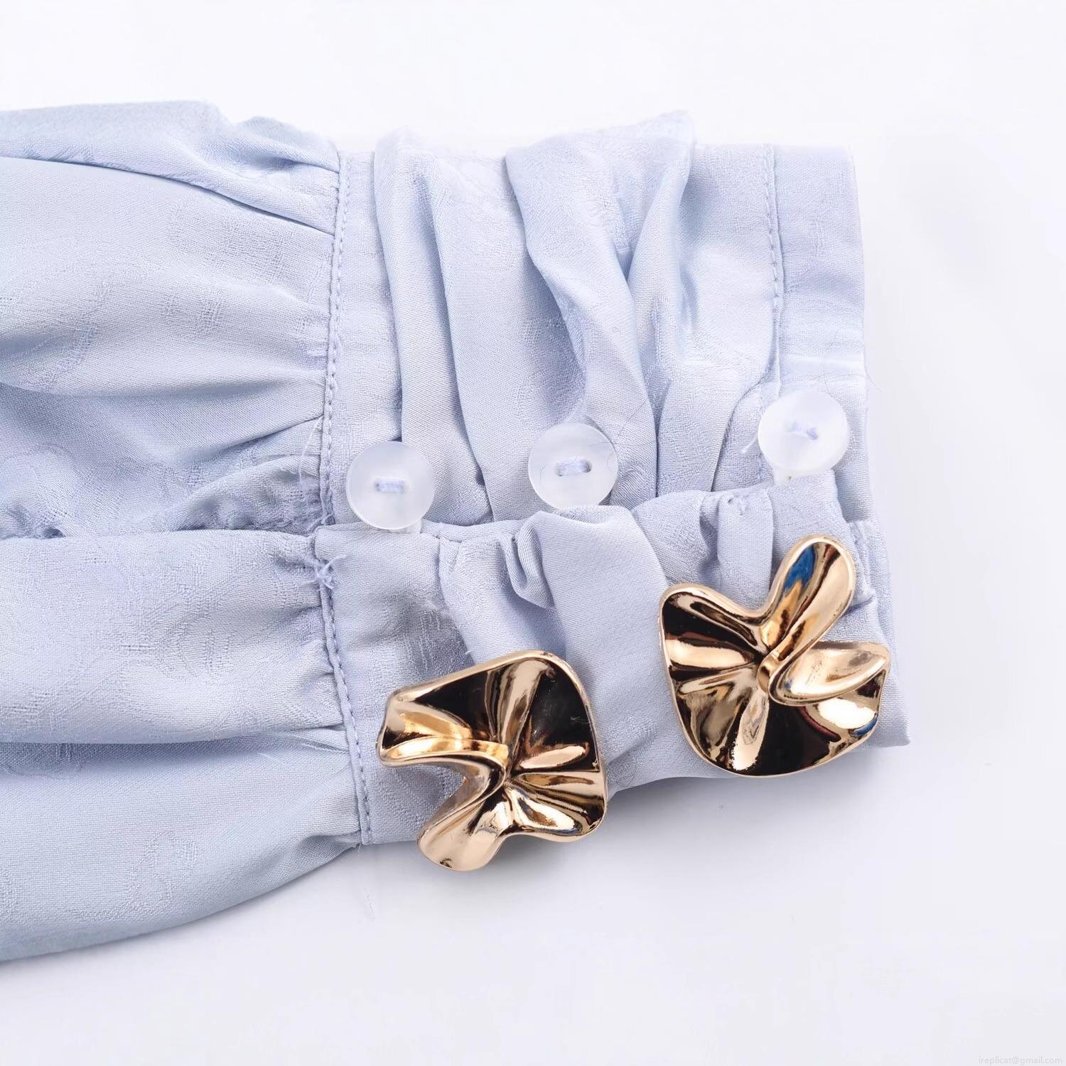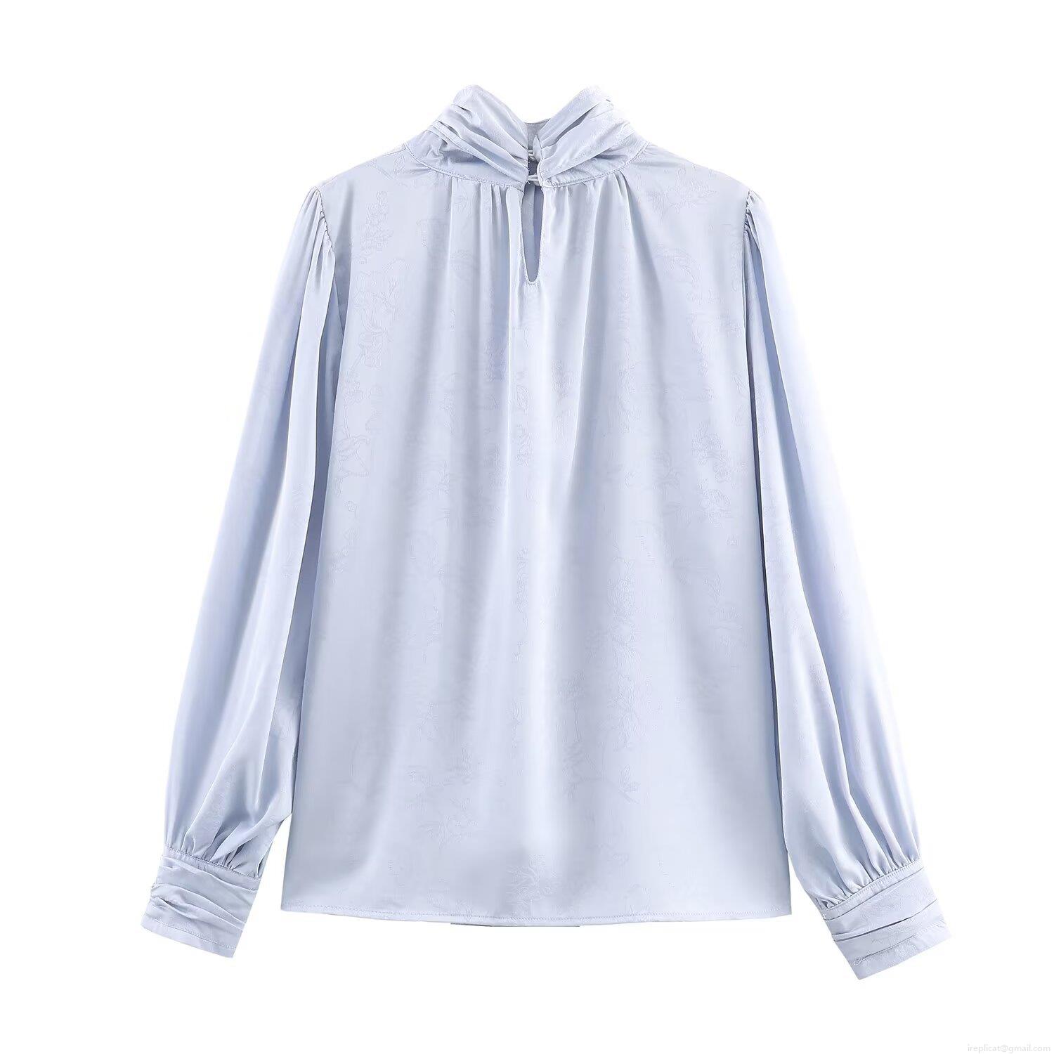 • Elegant Women Jacquard Silk Satin Blouse Bow Tie Neck Long Sleeve Shirt Floral Pattern Solid Light Blue Top For Office Work Party Streetwear Lady