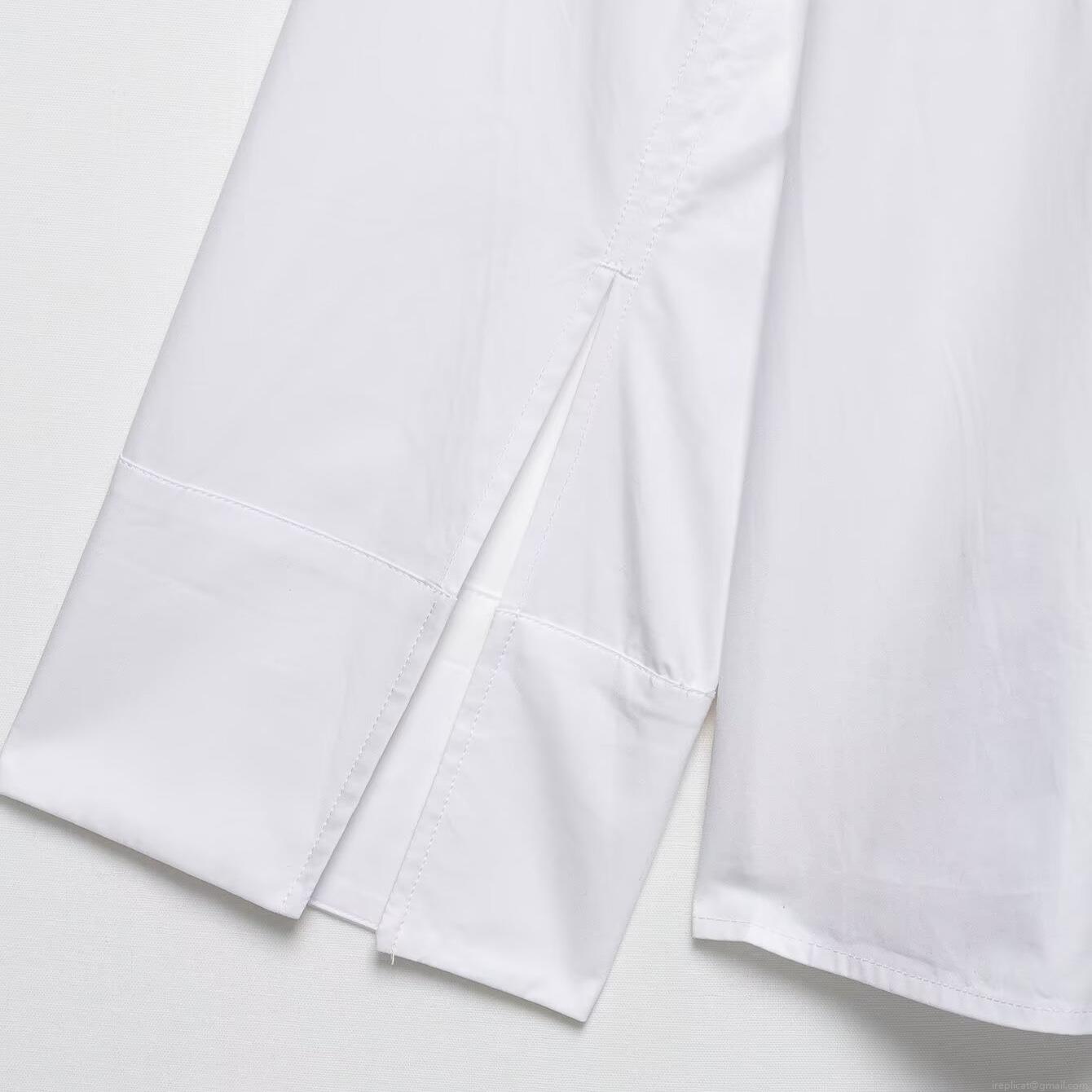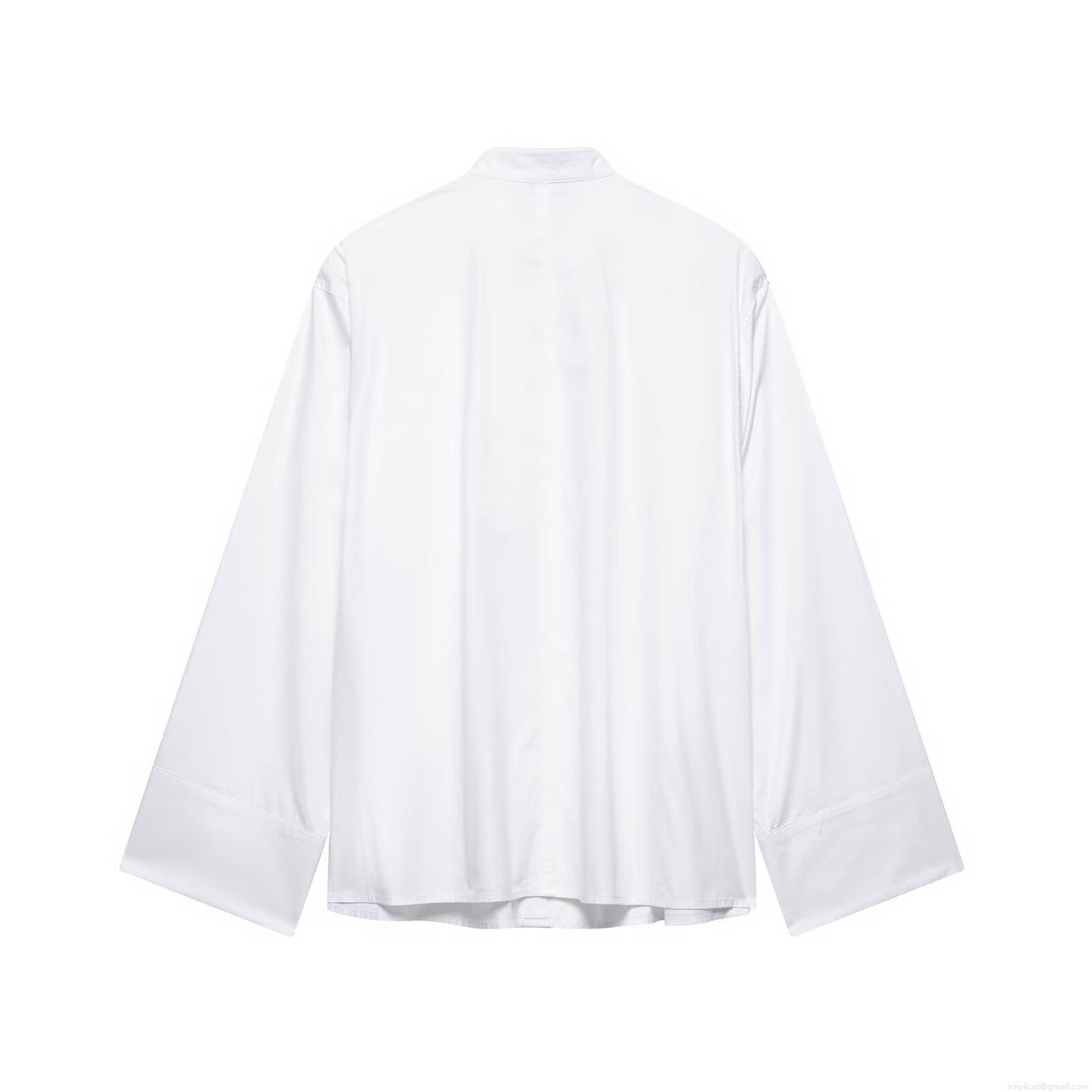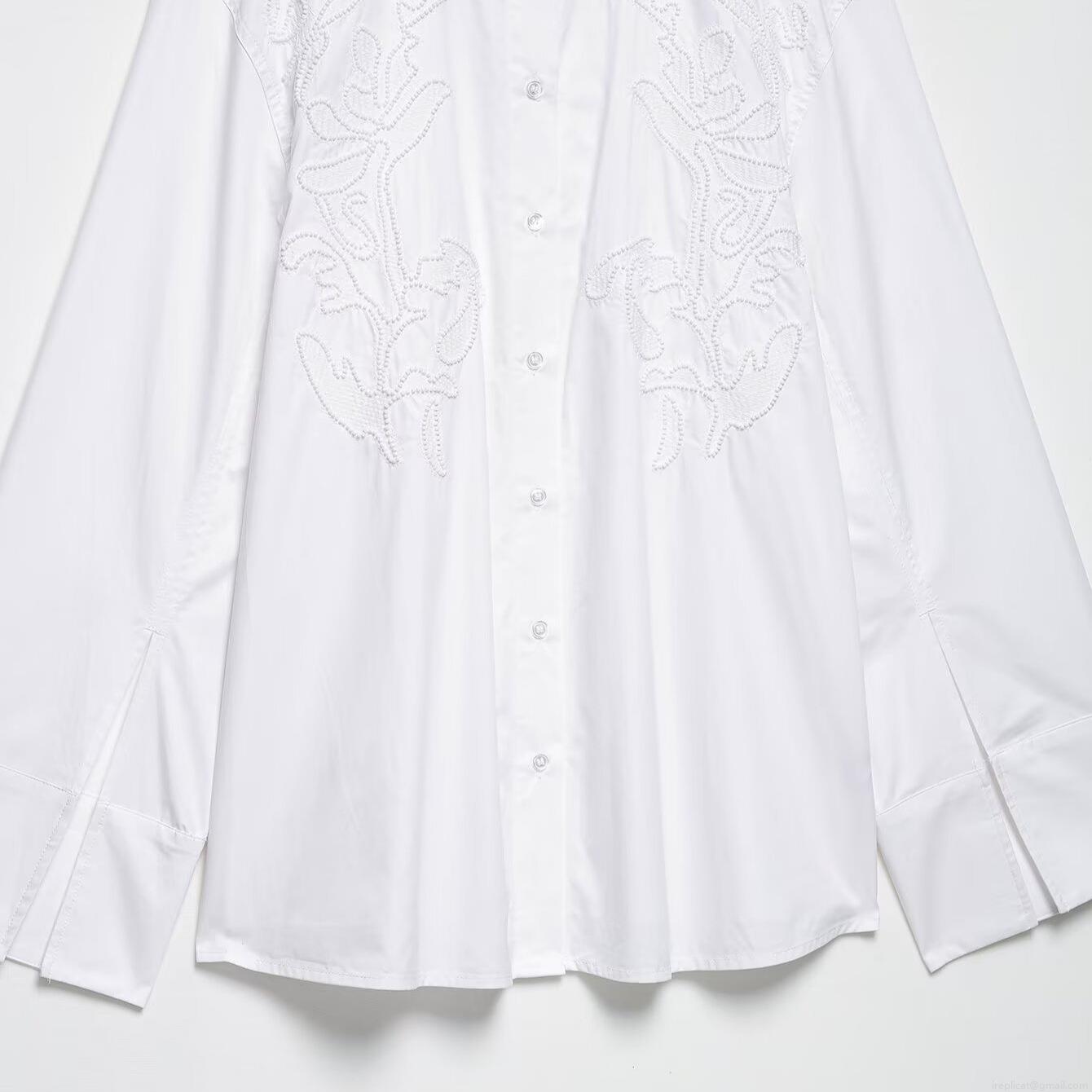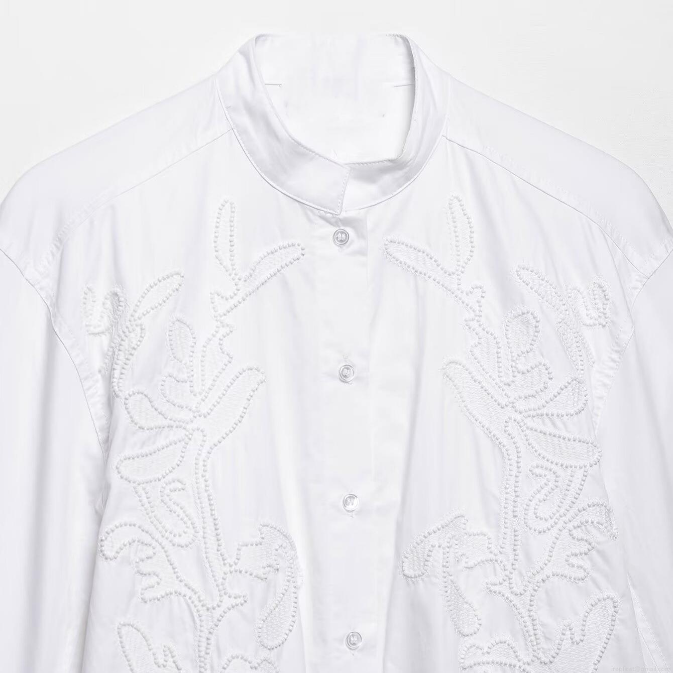 • Elegant Women Polyester Woven Blouse Floral Vine Embroidery Stand Collar Side Slit Long Sleeve Single Breasted Casual Office Work Shirt