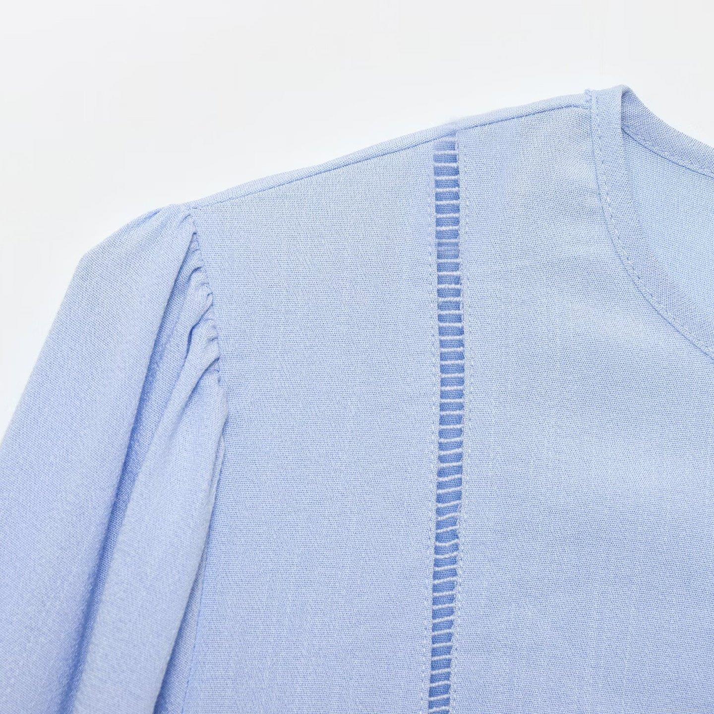 Solid Color, Splice, Hollow Out, Ruffles, Lantern Sleeves, Accordion Pleats