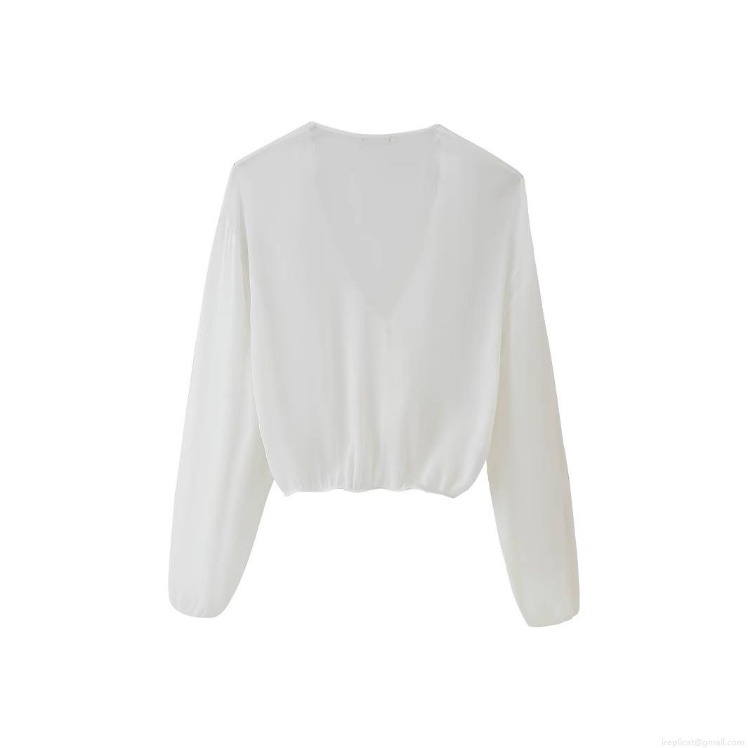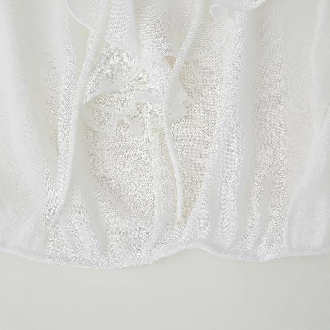• Elegant Women Ruffle V Neck Blouse Chiffon Long Sleeve Tie Front Layered Solid Color Casual Daily Party Fashion Tops