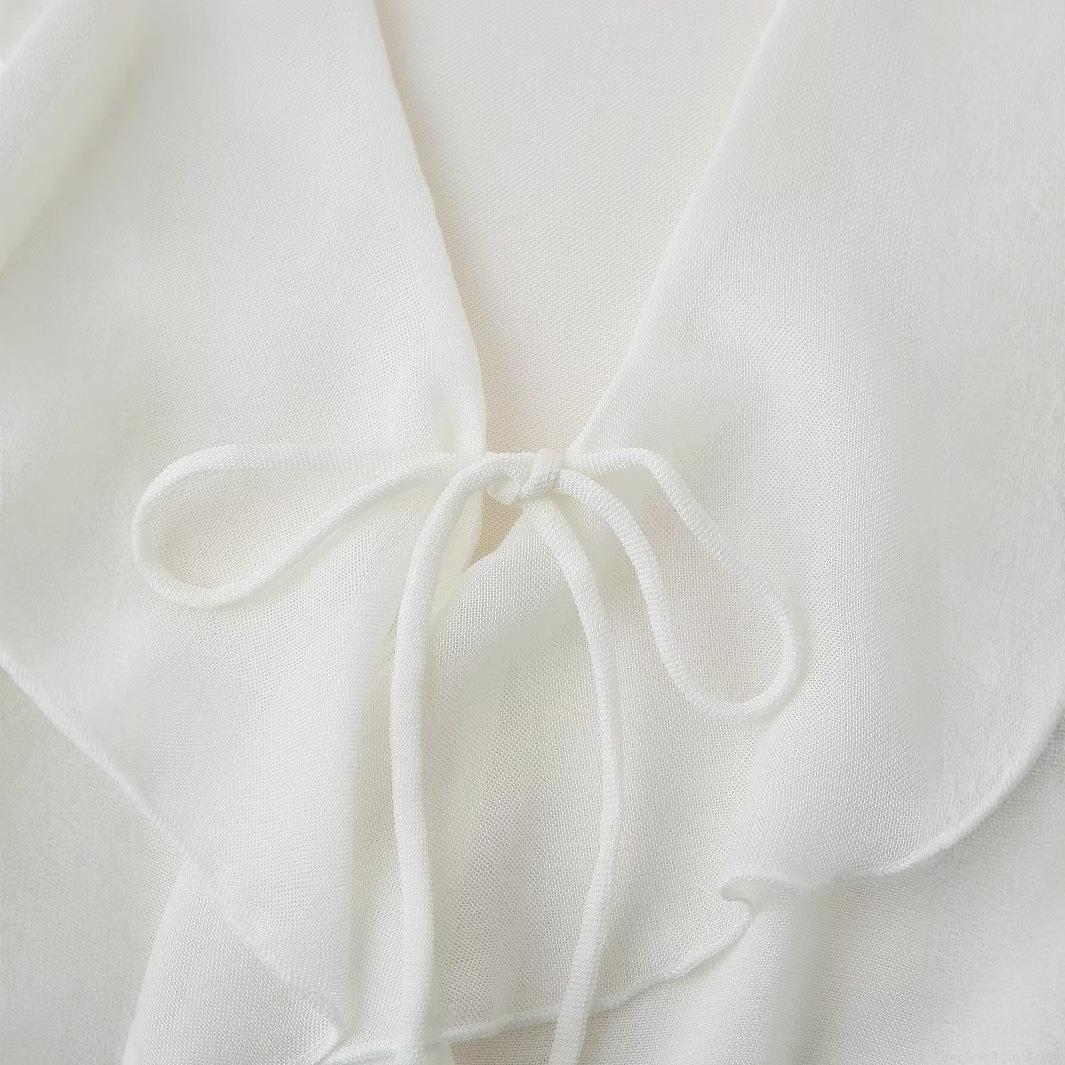 Elegant Women Ruffle V Neck Blouse Chiffon Long Sleeve Tie Front Layered Solid Color Casual Daily Party Fashion Tops