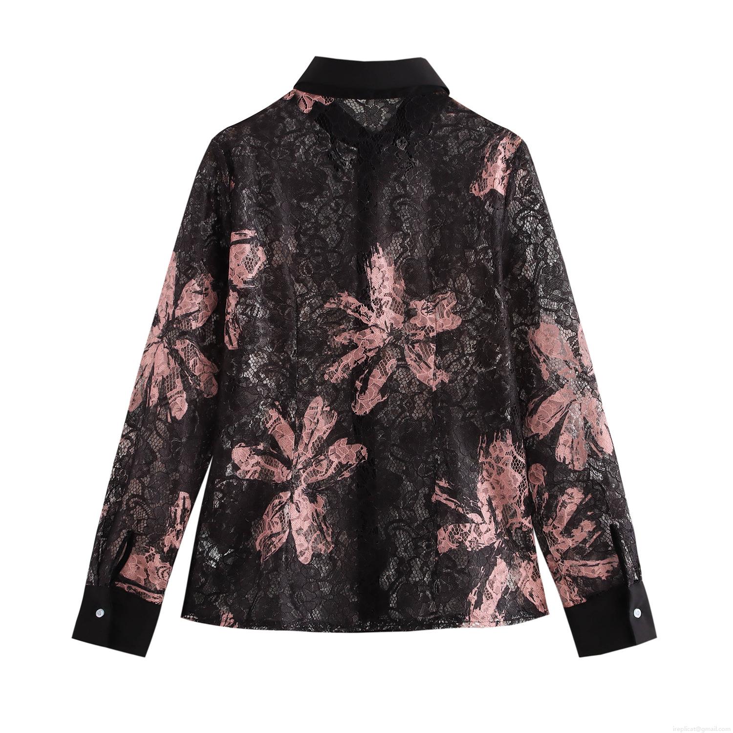 • Elegant Women's Black Lace Blouse Long Sleeve Floral Print Button Down Shirt Lapel Collar Sophisticated Vintage Tops Party Office Casual Autumn Winter