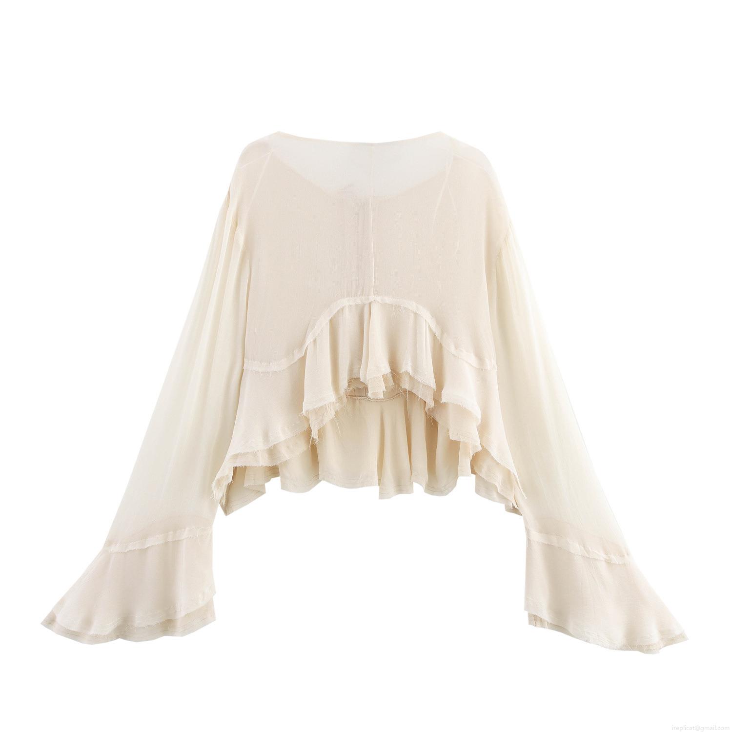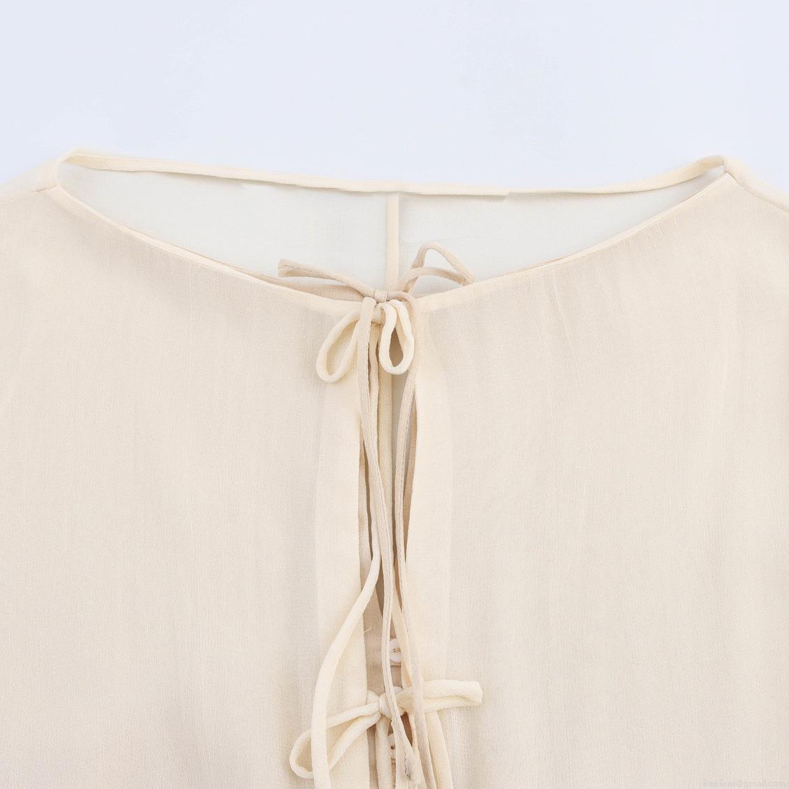 • Elegant Women's Chiffon Blouse With Ruffle Flared Sleeve And Tie-Neck Fashion Solid Color Loose Short Top For Office Casual Party