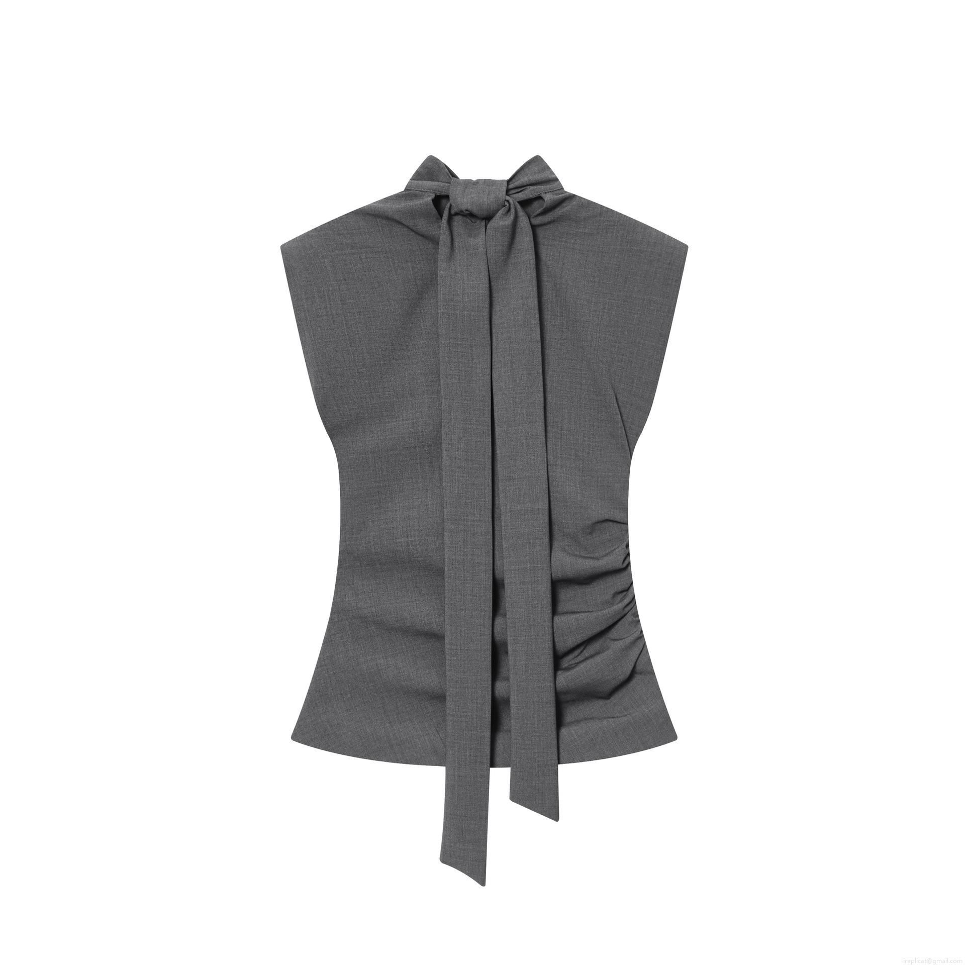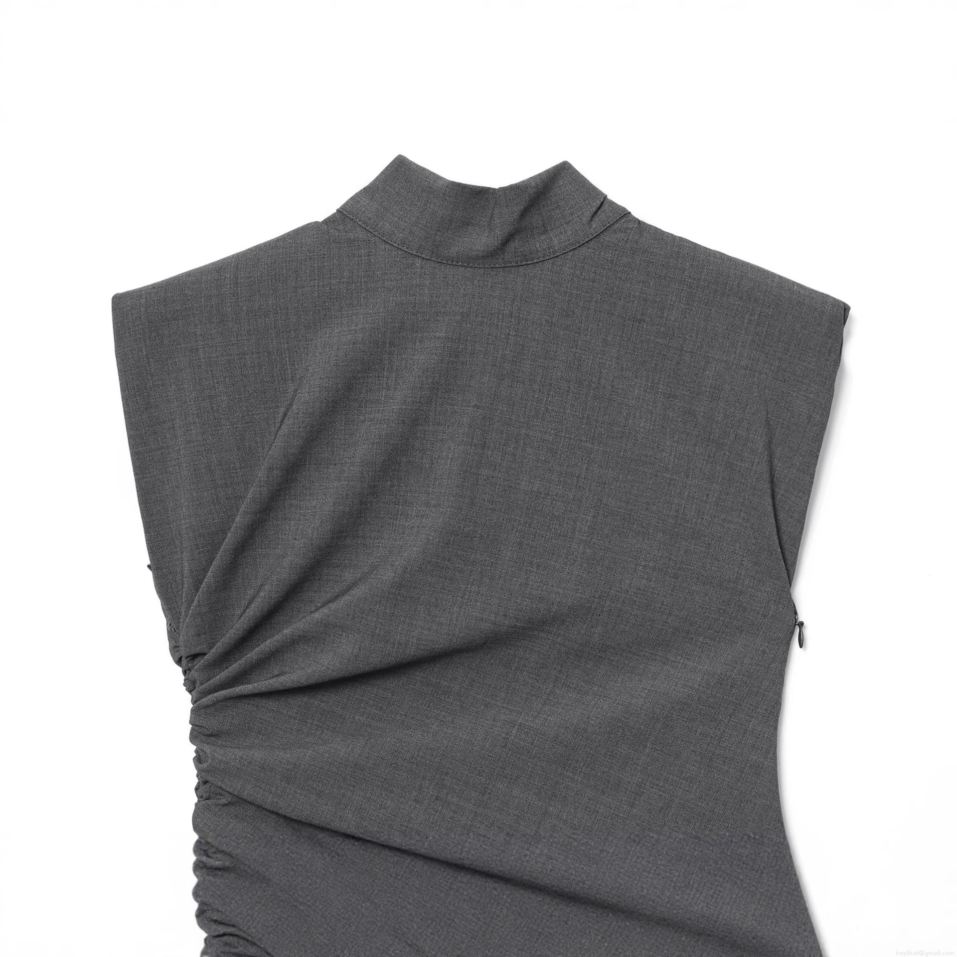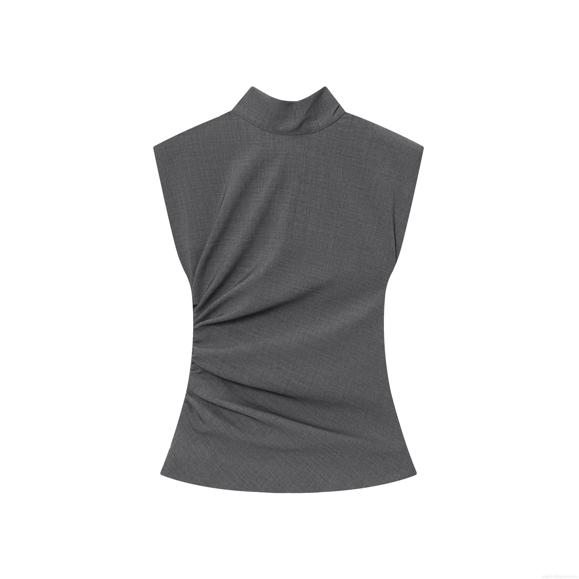 • Elegant Women's Mock Neck Sleeveless Blouse With Shoulder Pads Ruching Side Slim Fit TR Twill Solid Color Grey Top For Work Office Party Chic Shirt