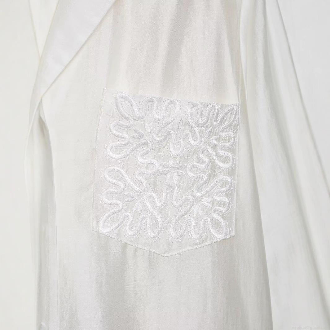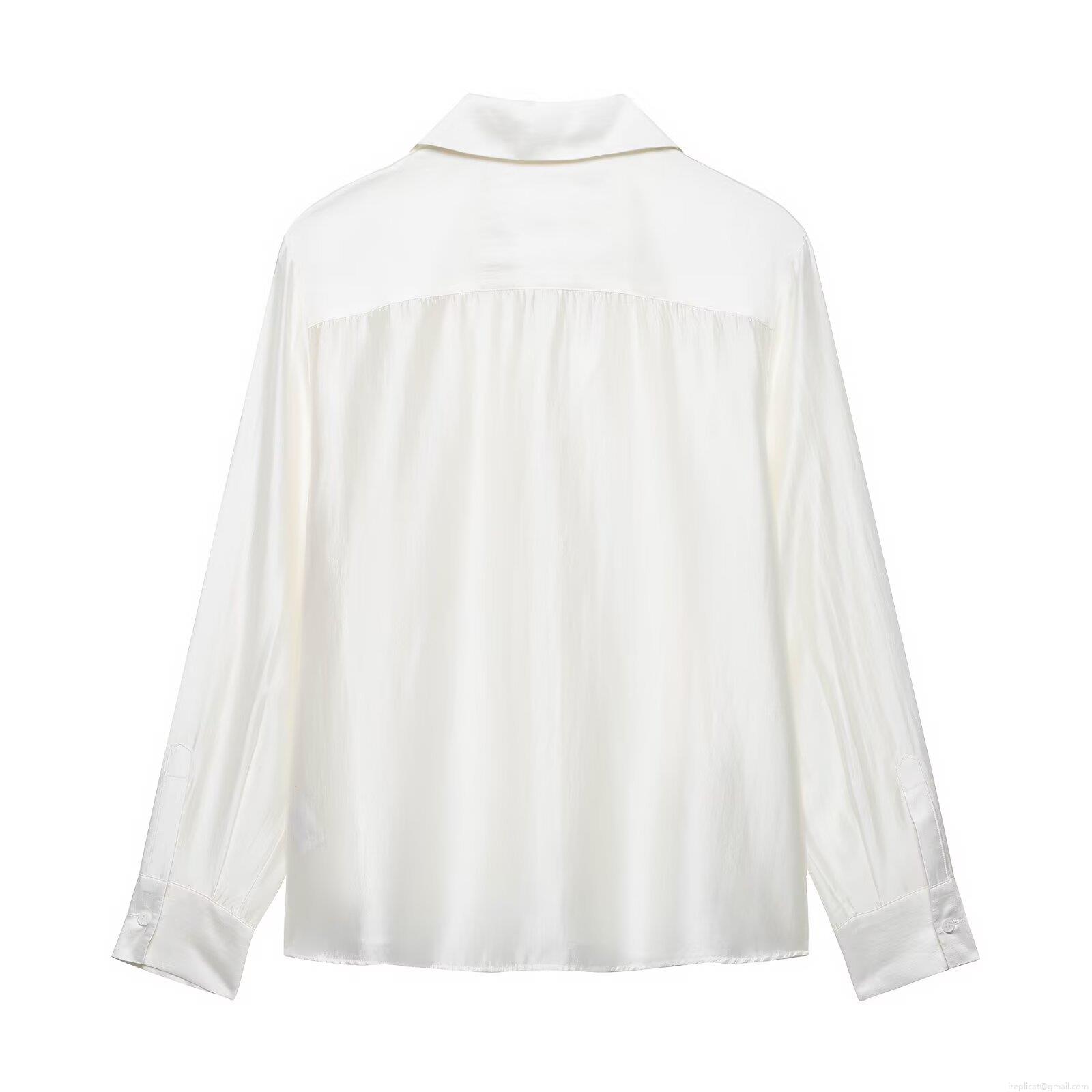 Elegant Women's Satin White Shirt With Embroidery Pocket Long Sleeve Button Down Blouse For Office Casual Party Lady Tops