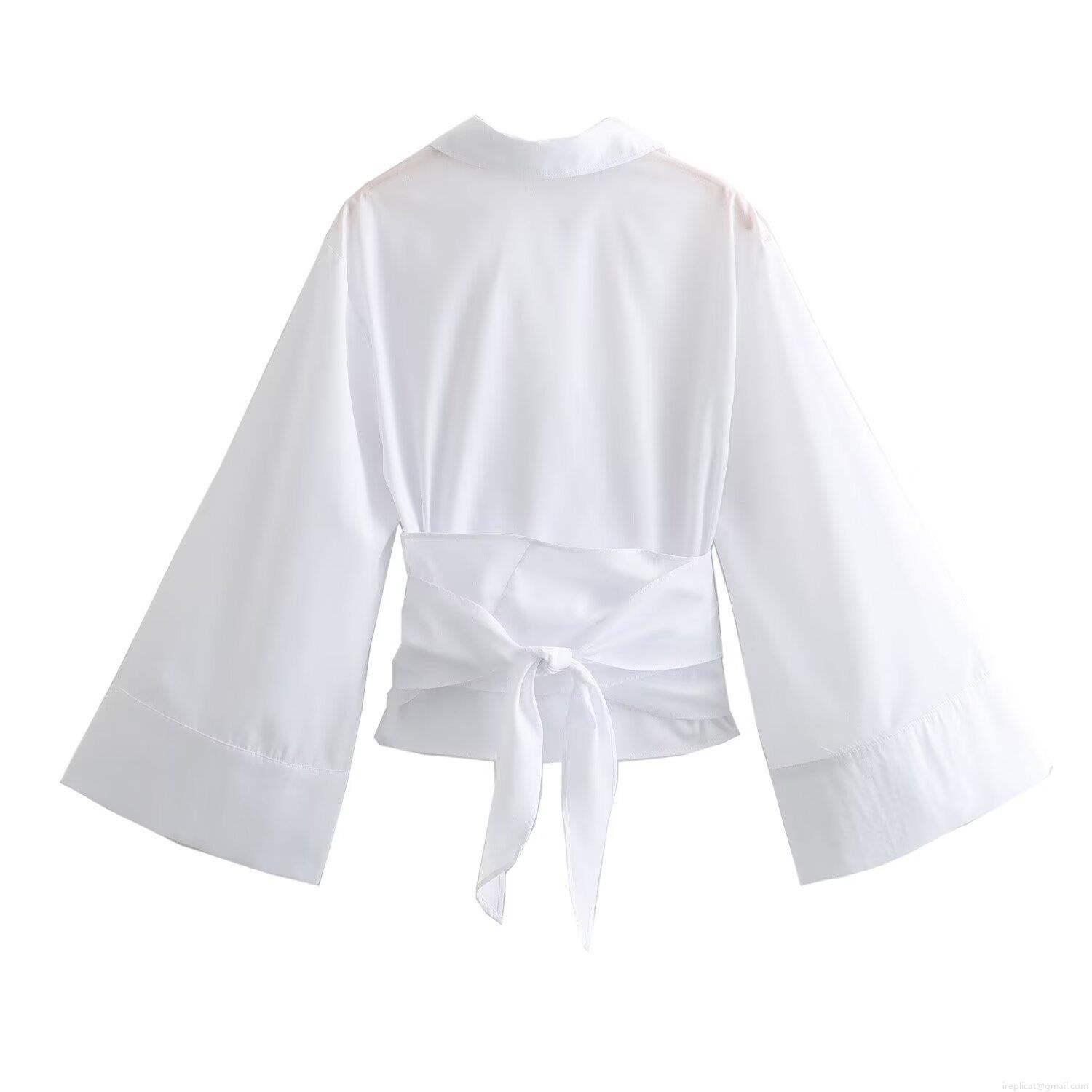 • Elegant Women's Solid Color TC Poplin Shirt Long Sleeve Wide Cuffs Waist Tie Blouse For Daily Office Casual Wear Stylish Lapel Top