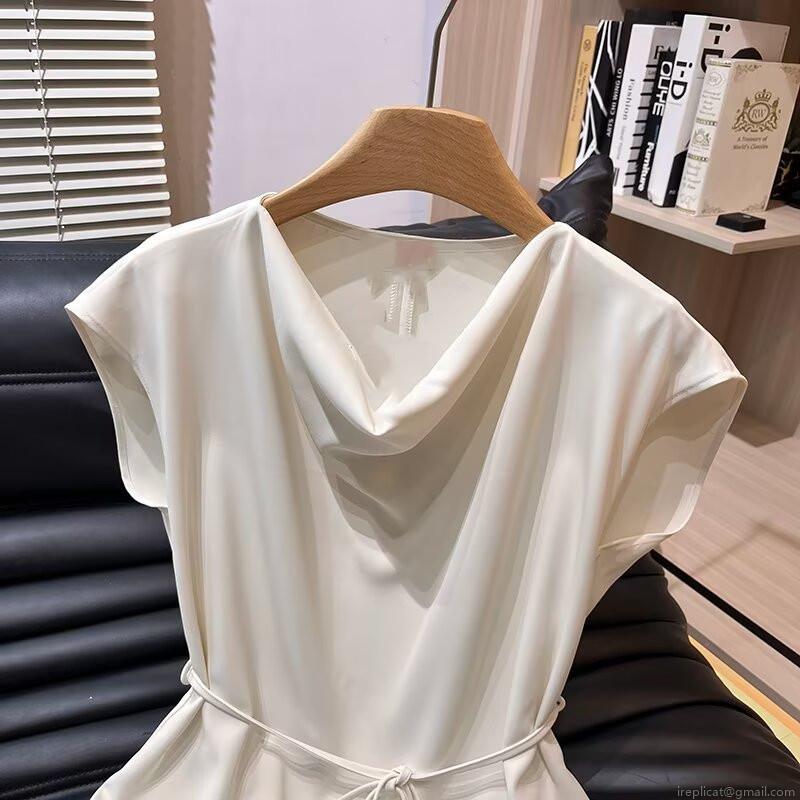 • Elegant Women's Viscose Blouse Cowl Neck Cap Sleeve Top With Tie Waist Belt Solid Color Off-White Commute Shirt For Office Daily Wear
