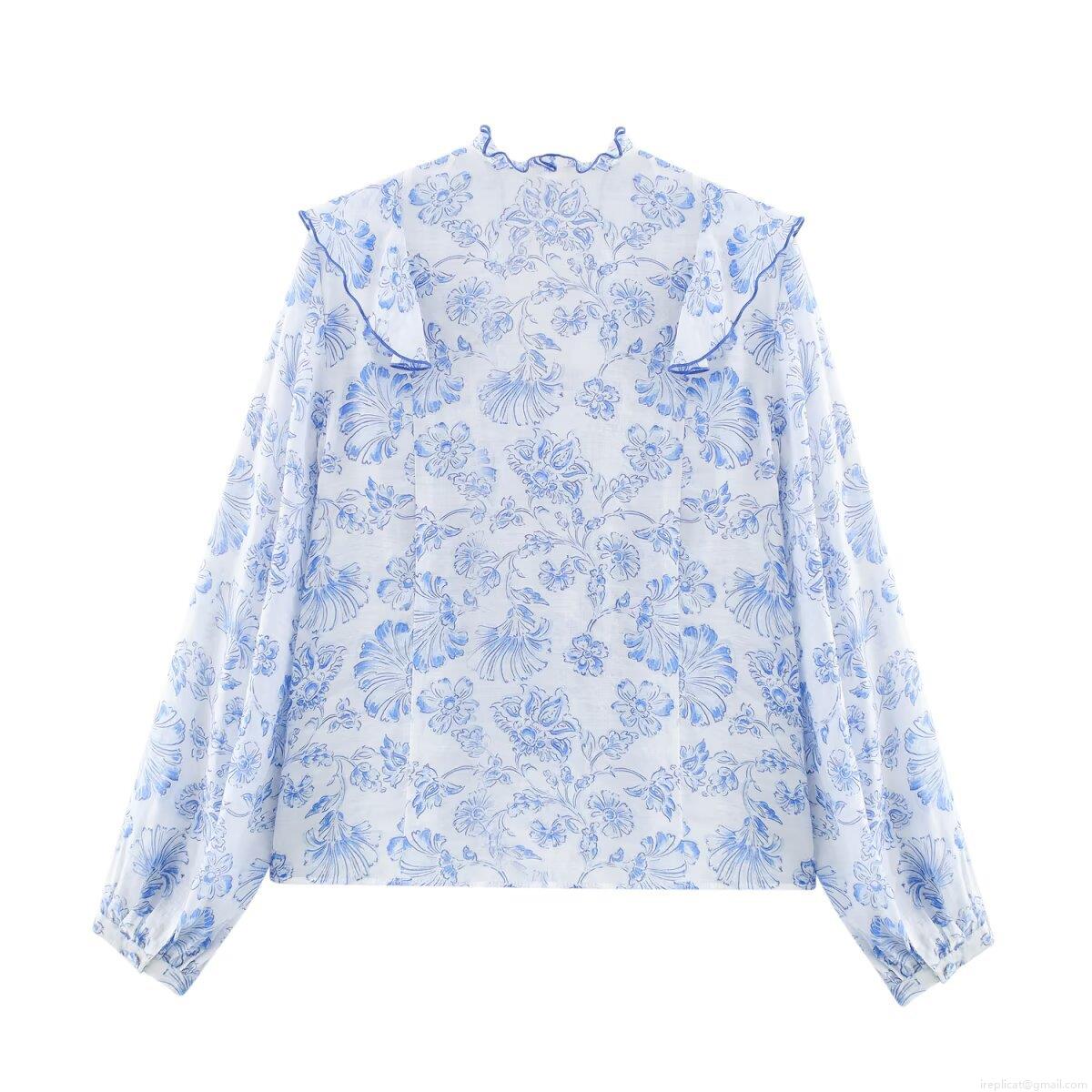 • Elegant Women's V-Neck Floral Print Ruffle Blouse Long Sleeve Polyester Tops Casual Office Sweet Shirt For Women