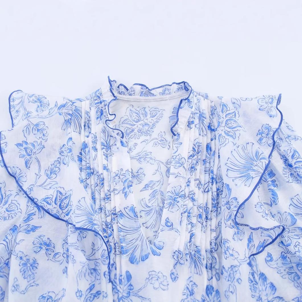 Floral Pattern, Ruffles, Plants And Flowers, V-neck, Single Row With Multiple Deductions