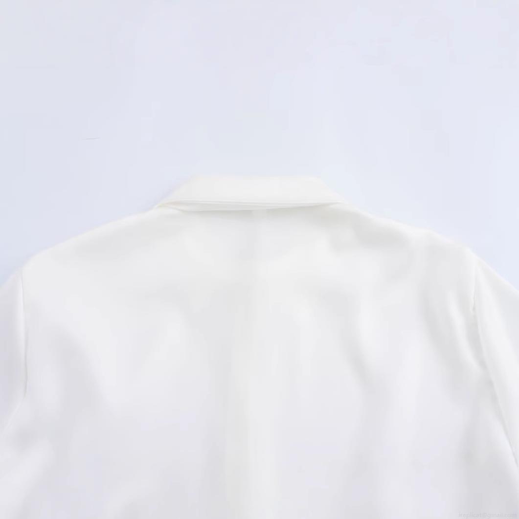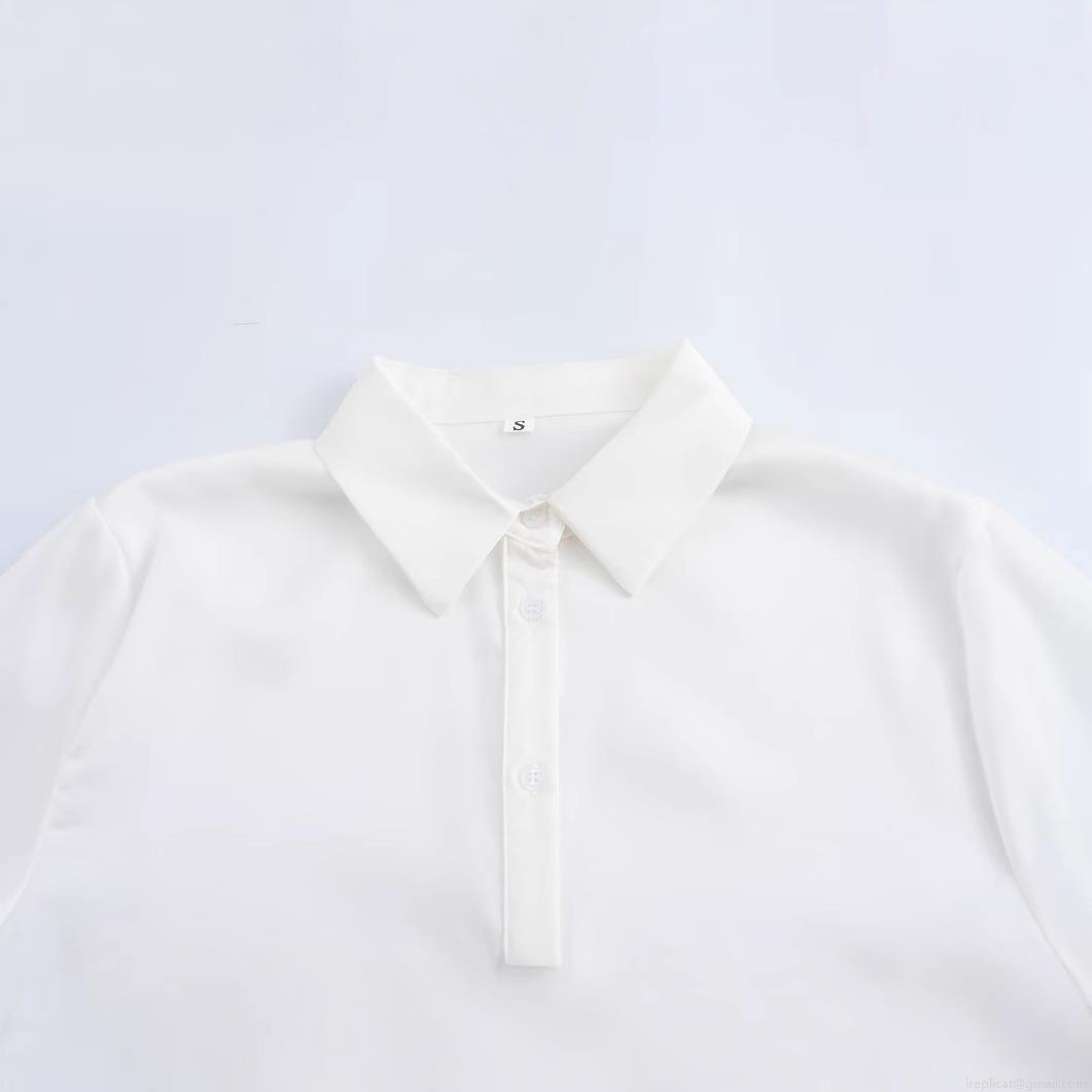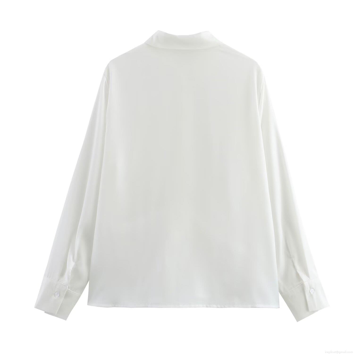 • Elegant Women's White Polyester Satin Blouse Long Sleeve Lapel Button Down Shirt With Front Tie-Knot Detail Chic Street Style Casual Tops For Women