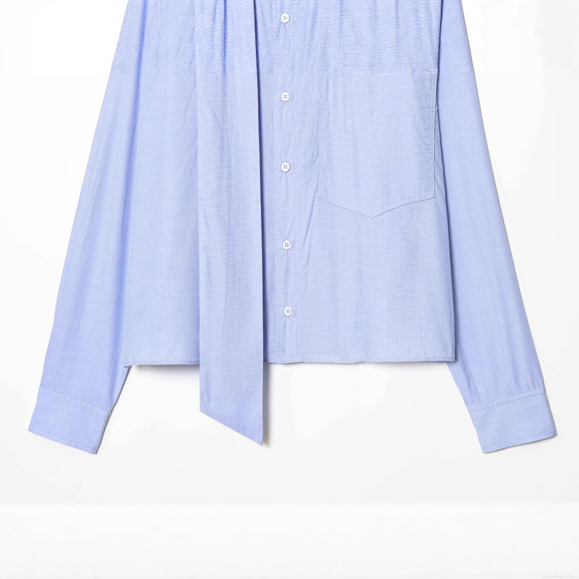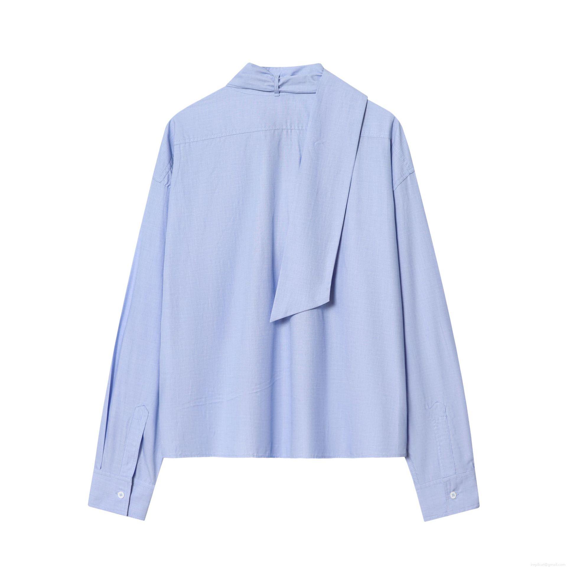 • Fashion Women Sky Blue Long Sleeve Shirt With Bow Tie Neck Detail Elegant Solid Color Polyester Blouse For Casual Office Lady Socialite Sweet Fresh Tops