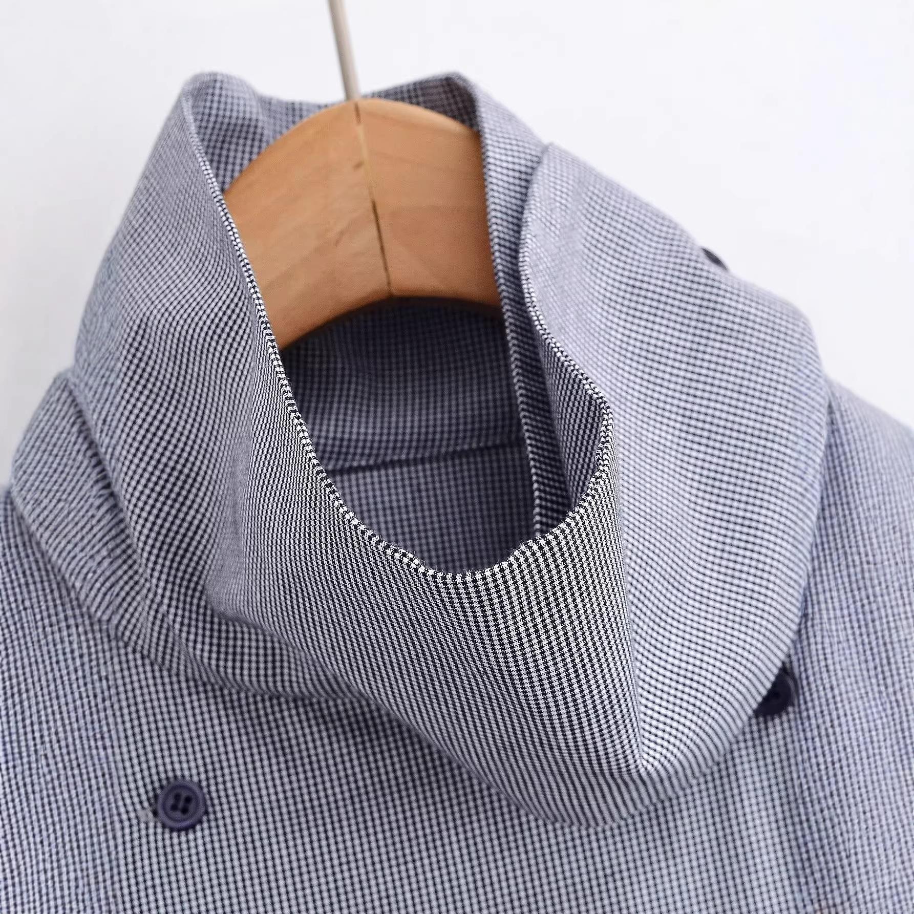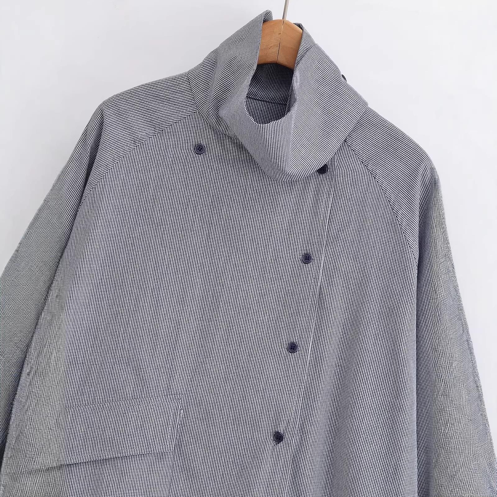 Houndstooth, Checkered Pattern, Irregular Hem, Turtleneck, Dropped Shoulder Sleeves, Big Pocket, Side Buckle