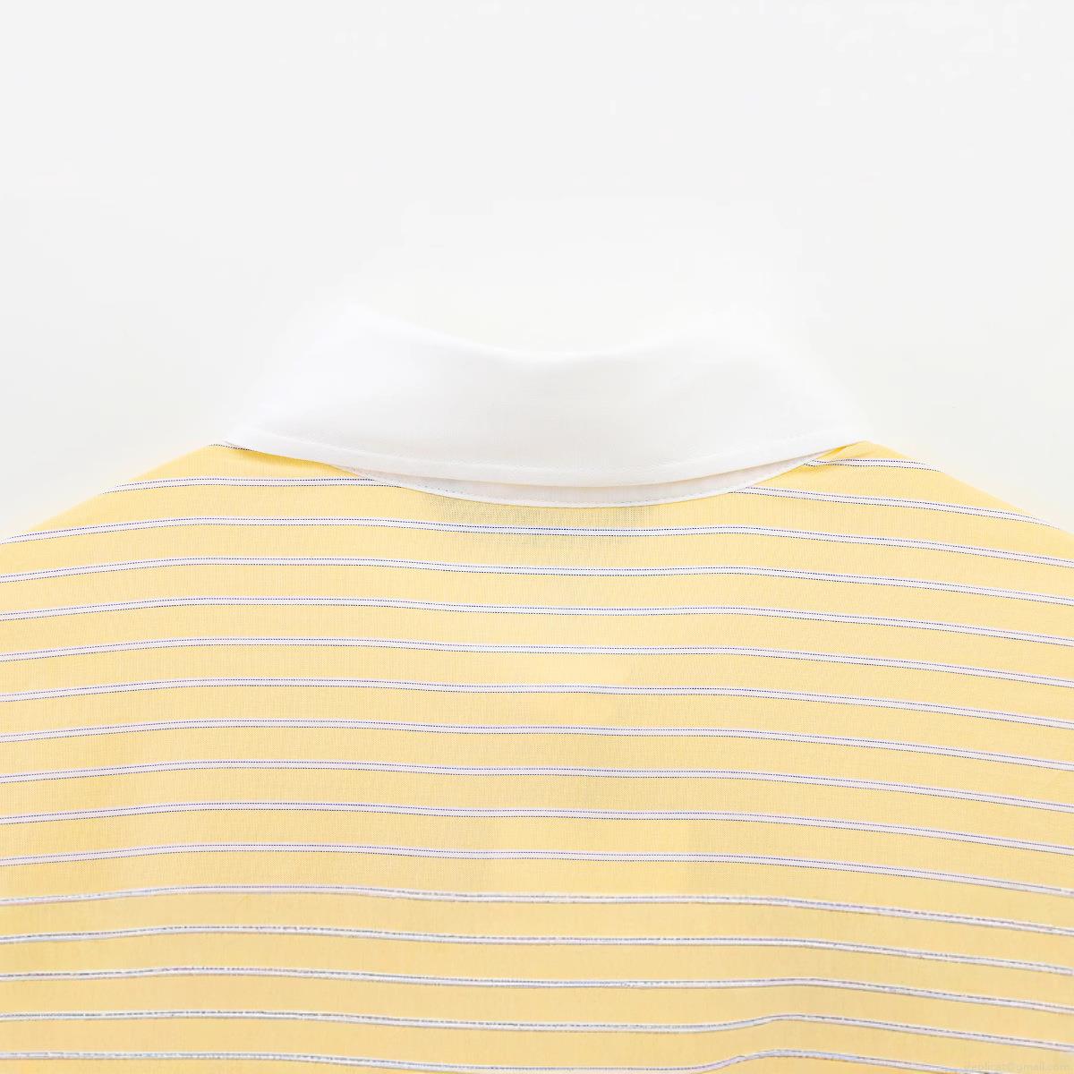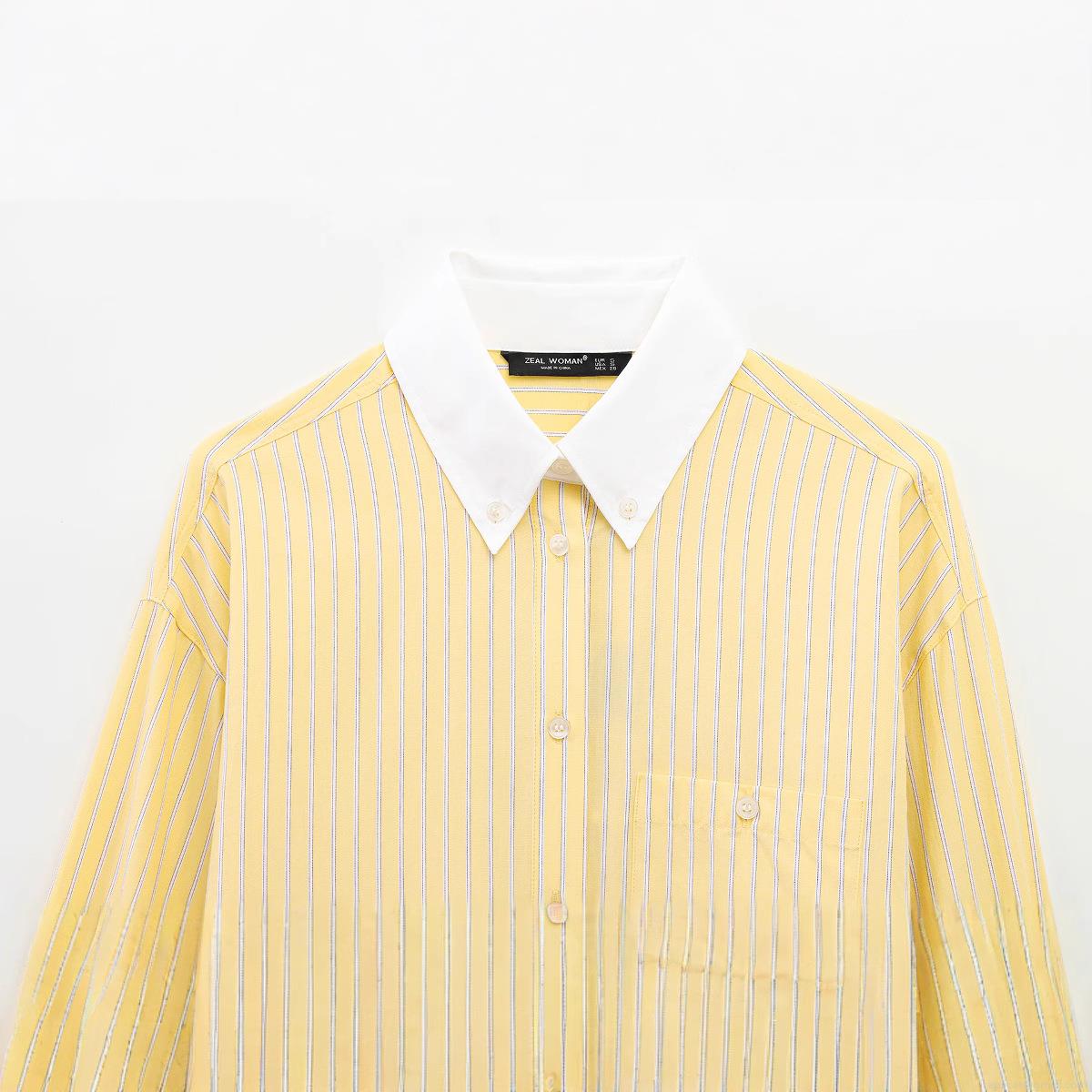 Fashion Women's Striped Long Sleeve Poplin Shirt Contrast Collar Loose Fit Button Down Blouse Casual Streetwear Office Top Yellow White