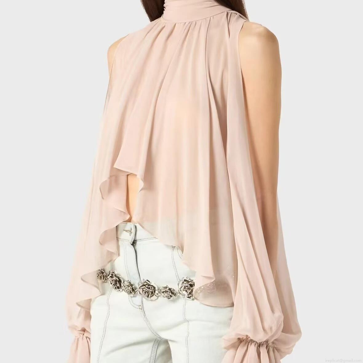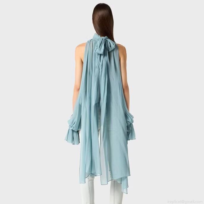 French Elegant Chiffon Blouse Pleated Sleeveless Halter Top with Back Bow Tie-up Loose Breathable Lightweight Summer Shirt for Women
