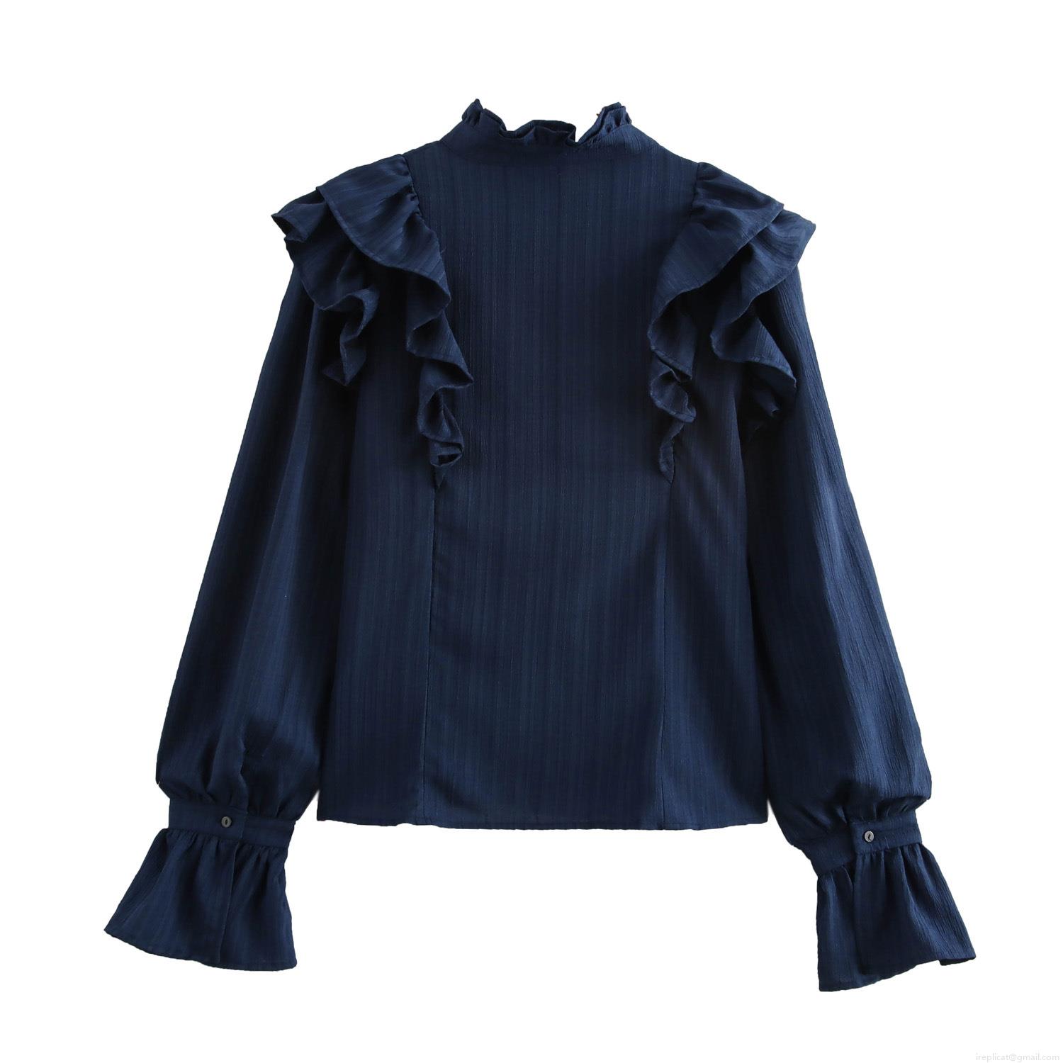 French Retro Ruffle Stand Collar Blouse Women's Elegant Solid Color Long Bubble Sleeve Polyester Shirt Top For Daily Date Party Office