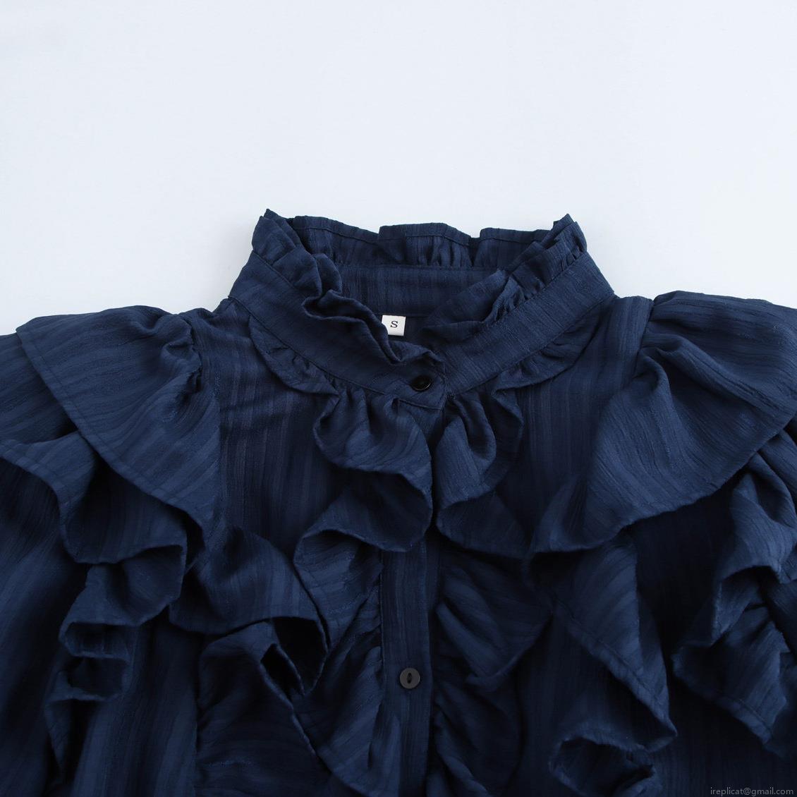 Solid Color, Wood Ear Edge, Ruffles, Puff Sleeves, Texture