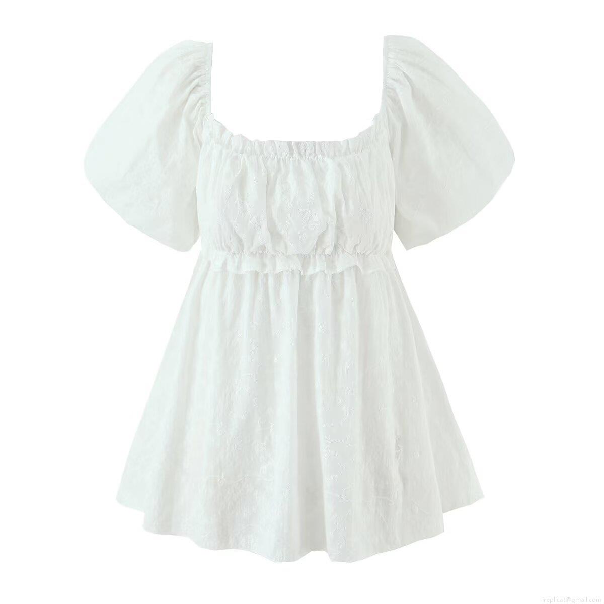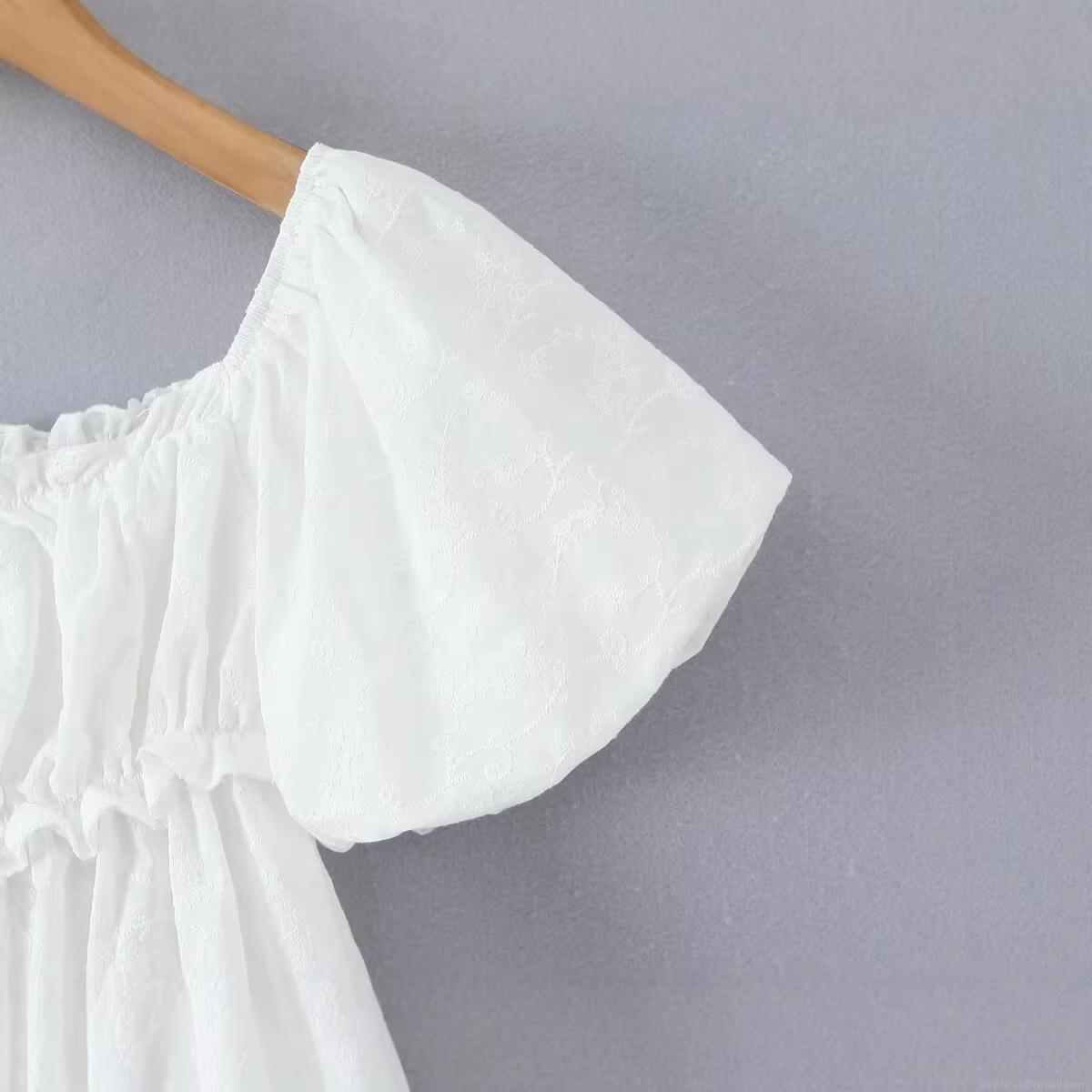 • French Retro White Cotton Embroidery Blouse Square Neck Puff Sleeve Smocked Babydoll Shirt Sweet Summer Floral Tops For Women