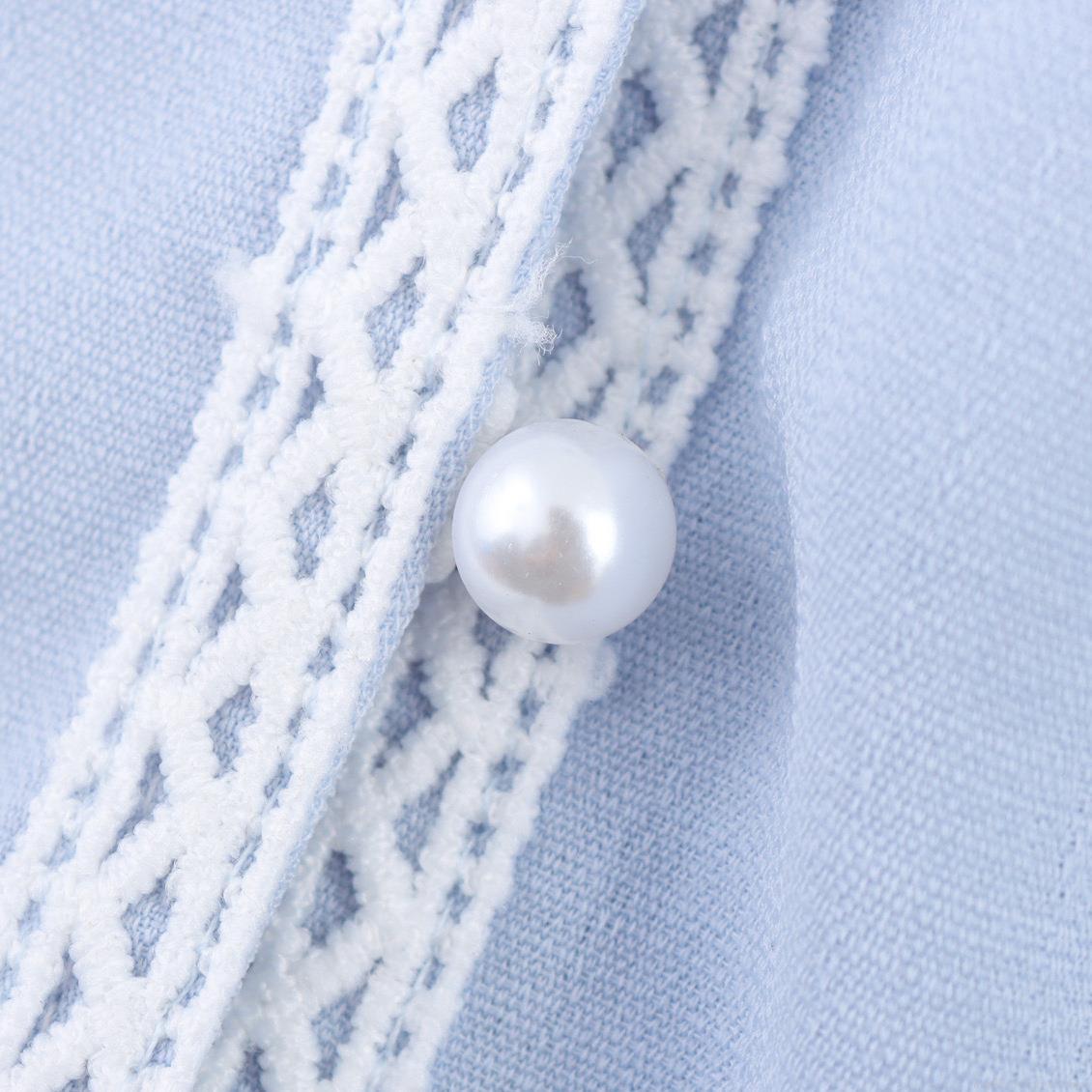 Solid Color, Lace, Plants And Flowers, Lantern Sleeves, Pearl Button Decoration