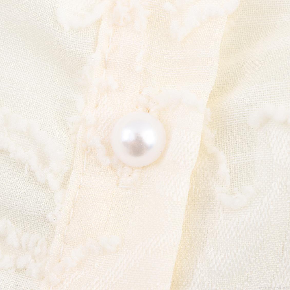 Wood Ear Edge, Pearl Button, Hollow Out, Lace, Puff Sleeves, Plant Jacquard