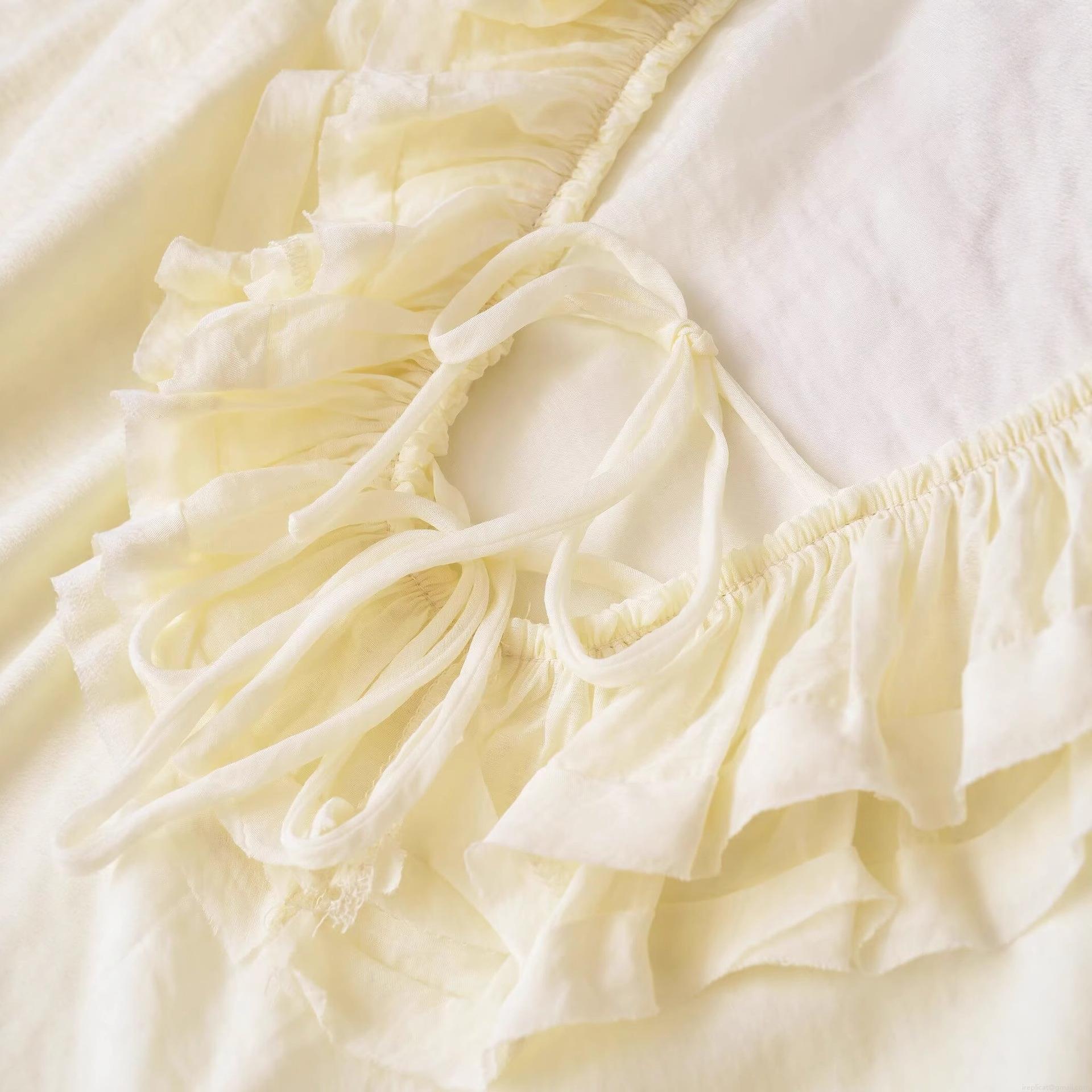 Solid Color, Wood Ear Edge, Ruffles, V-neck, Lace, Stacked