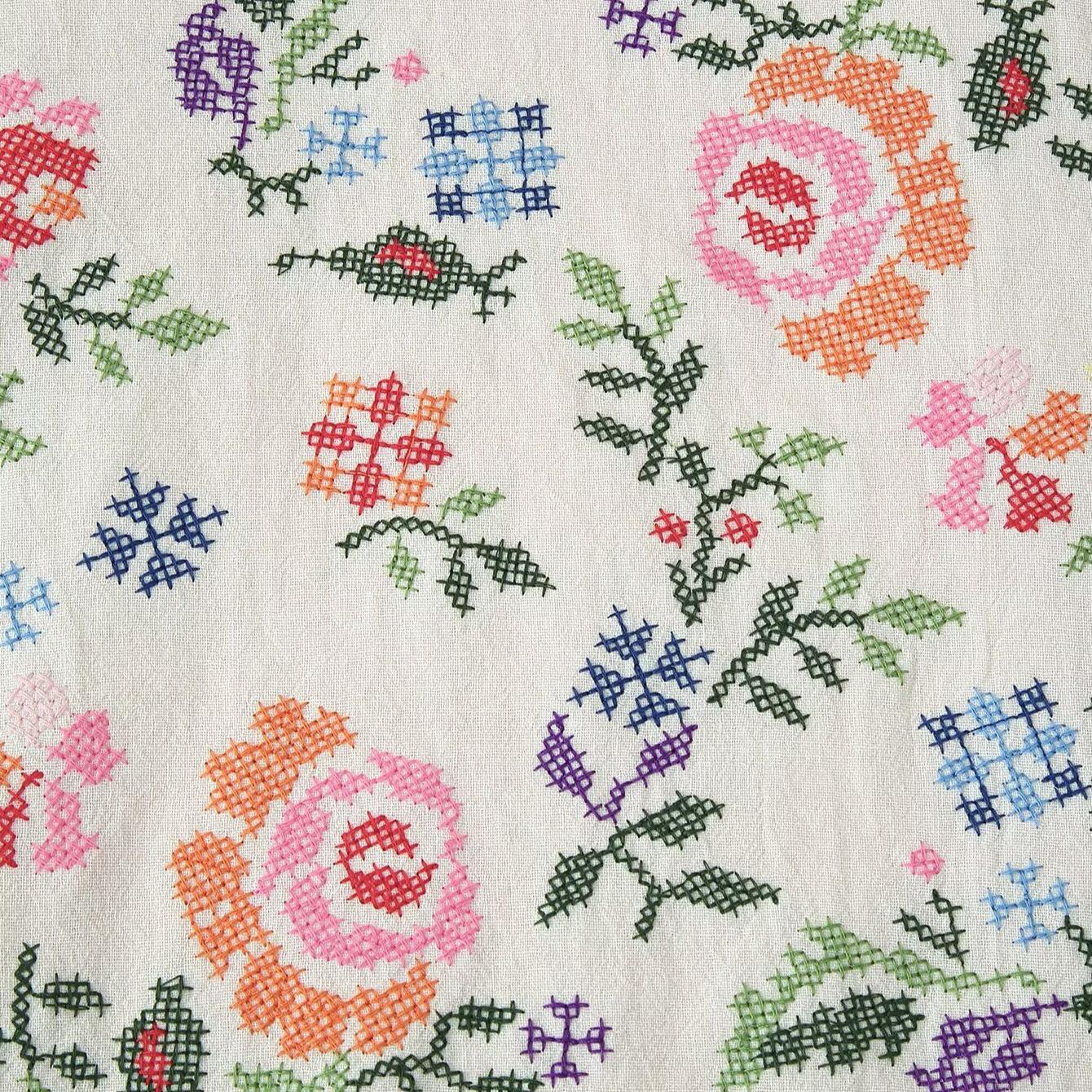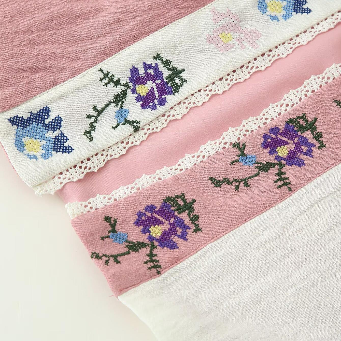 Floral Pattern, Cross-stitch, Color Blocking, Rose, Embroidered, Lace Trim, Geometric Flowers