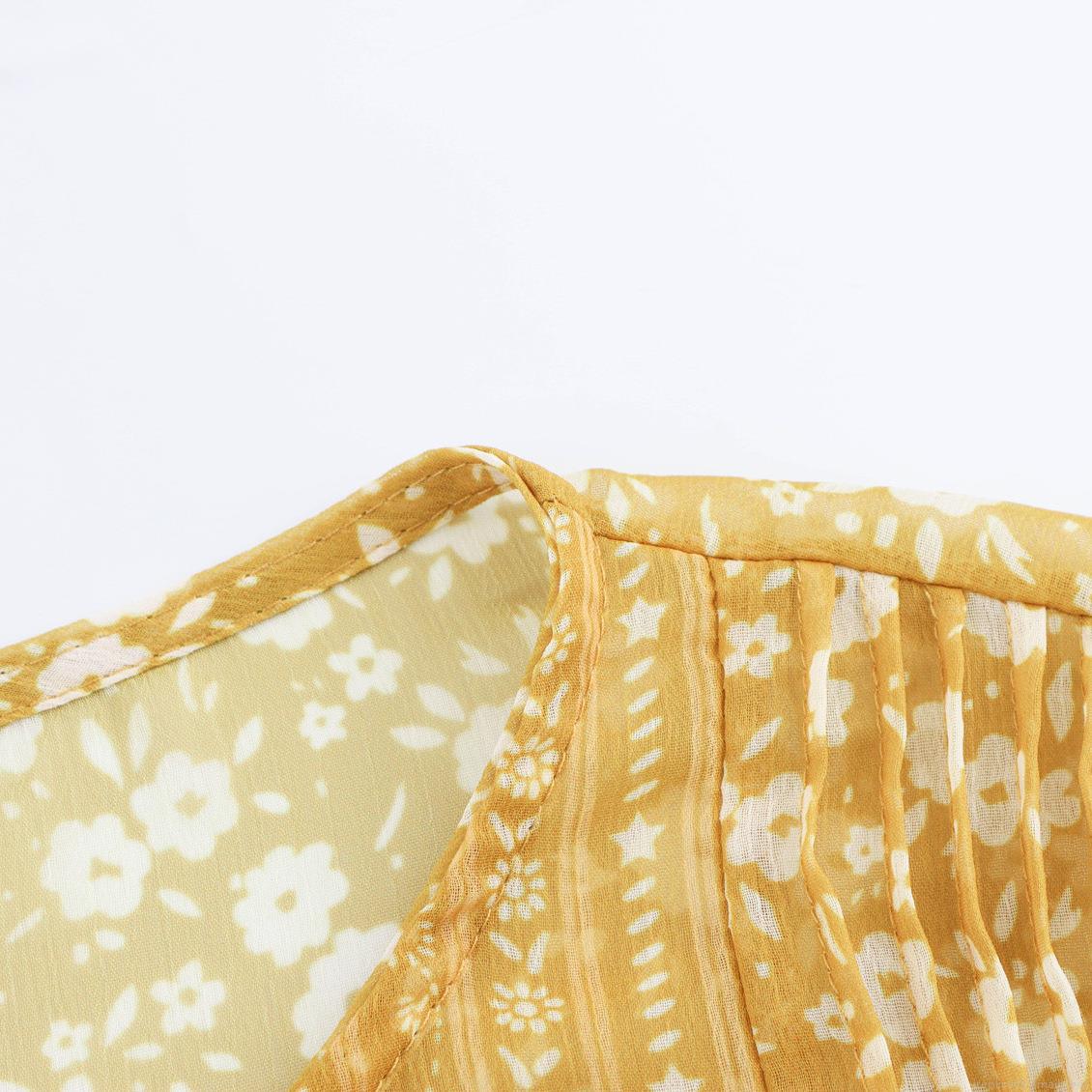 Pearl Button, Floral Pattern, Pleats, Lace