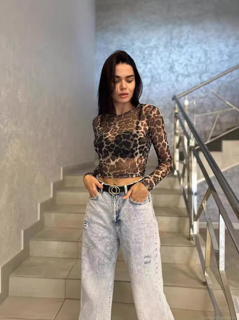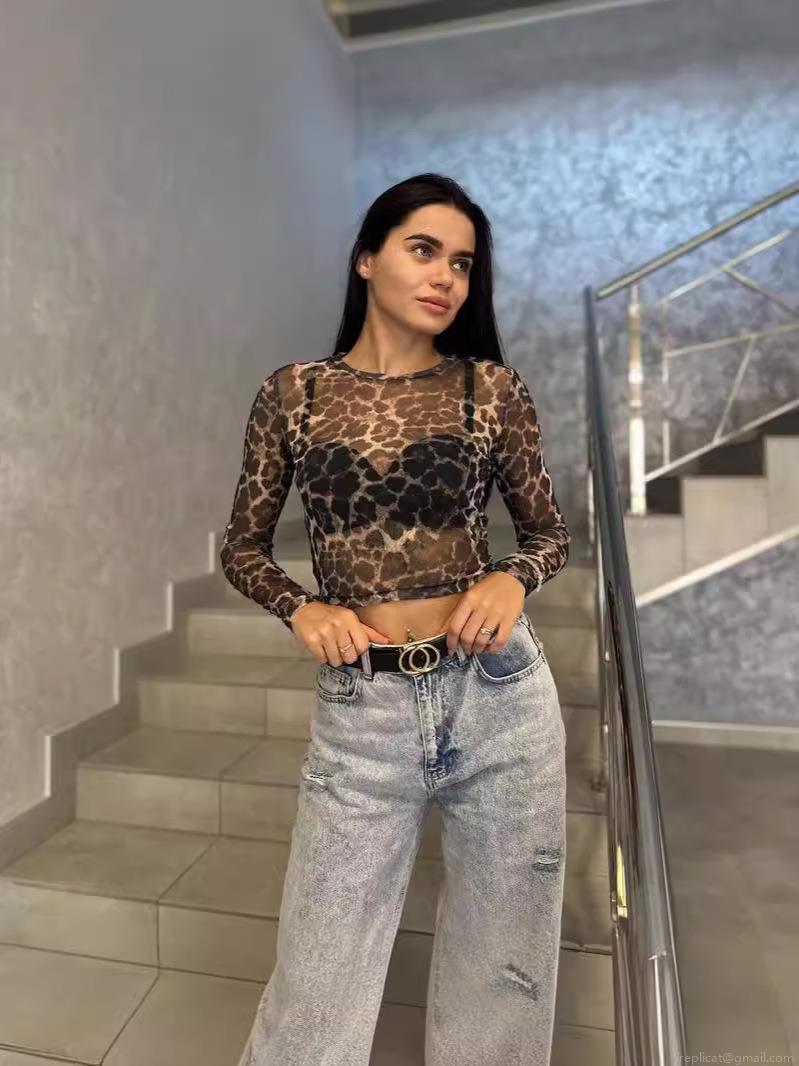 Leopard Print, Mesh See-through, Cut-off Design