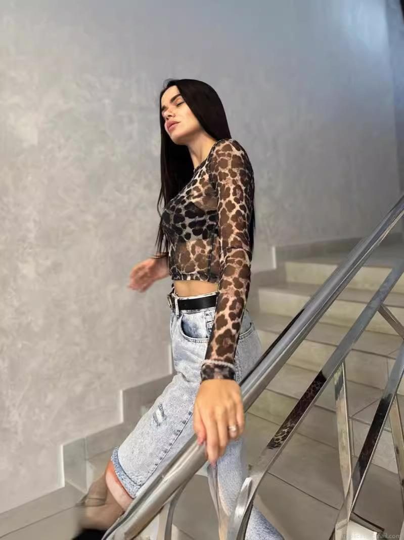 • Sexy Women Leopard Print Mesh Long Sleeve Top Sheer See Through Slim Fit Crop Top Y2K Streetwear Party Clubwear Blouse