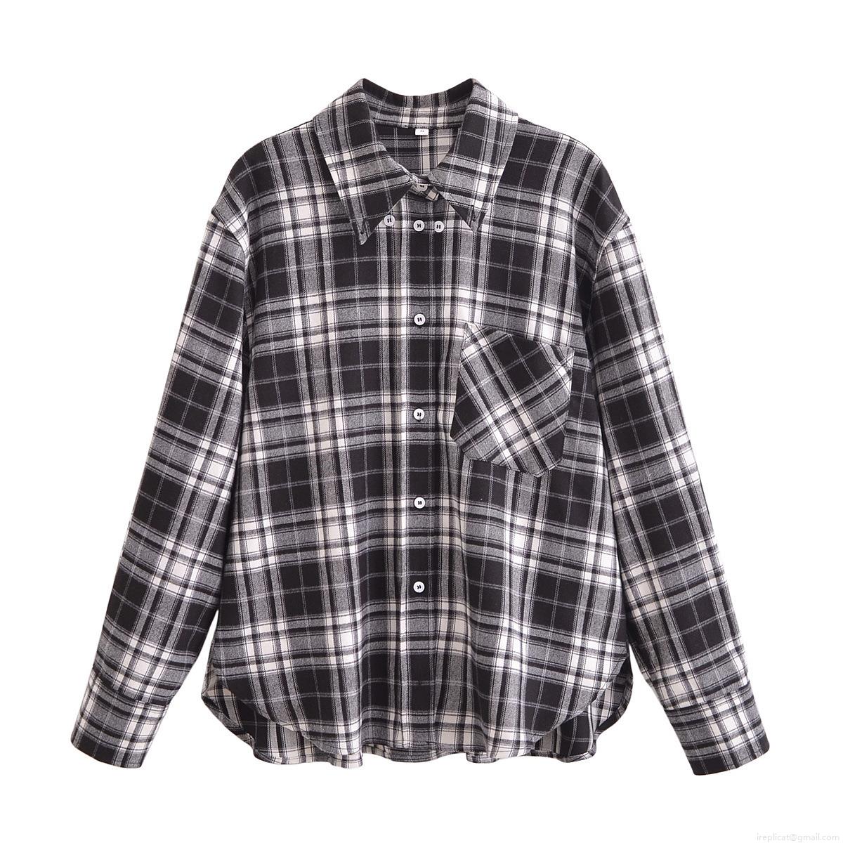 • Vintage Black and White Plaid Shirt For Women 100% Polyester Long Sleeve Button Down Blouse Casual Daily Wear Top With Pocket Arc Hem