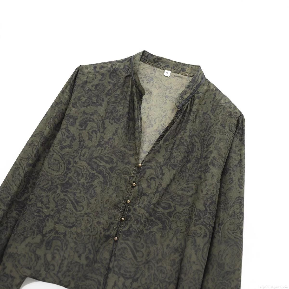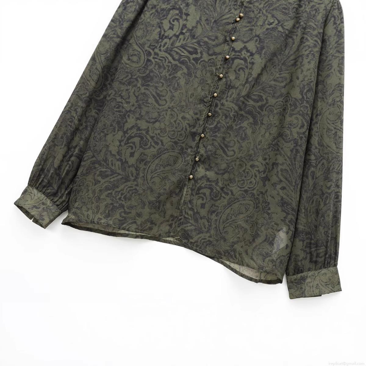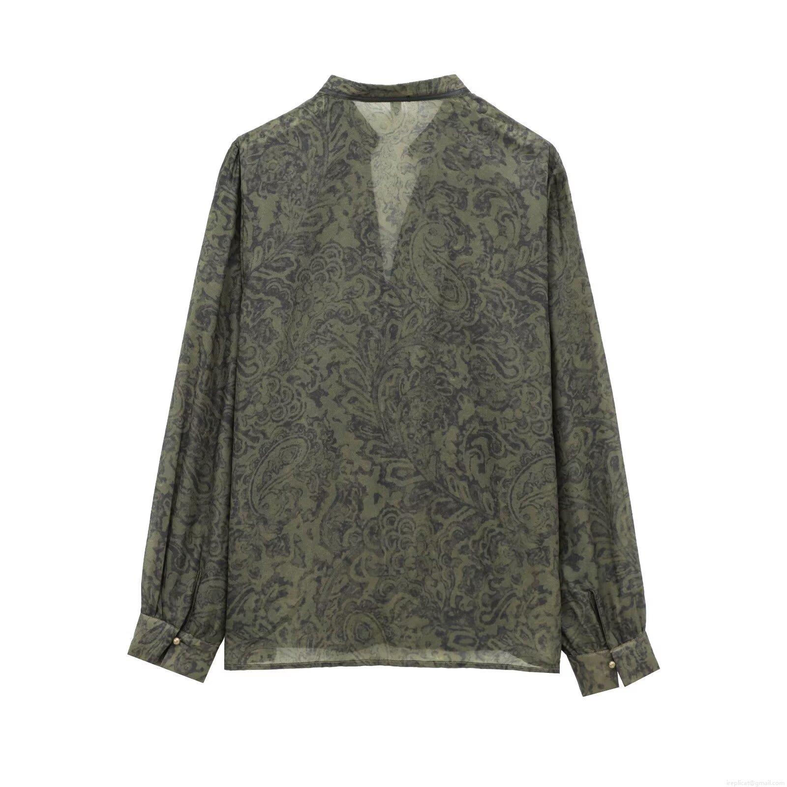 • Vintage Paisley Print Long Sleeve Chiffon Blouse Women's Button Down Shirt With Velvet Trim Olive Green Elegant Office Daily Party Top