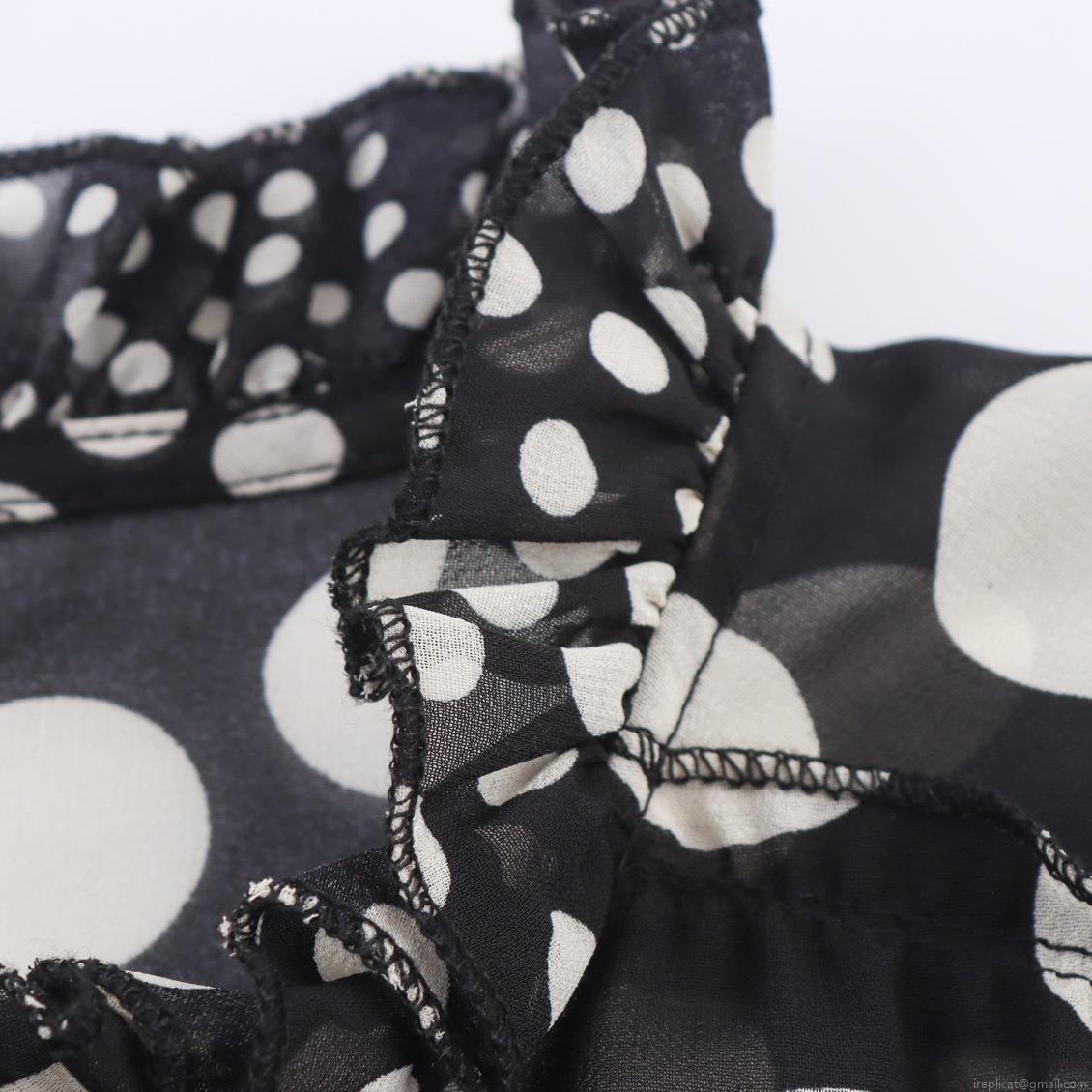• Vintage Polka Dot Chiffon Blouse Women Ruffle Stand Collar Tie Neck Lantern Sleeve Loose Casual Shirt Retro Elegant Ladies Tops