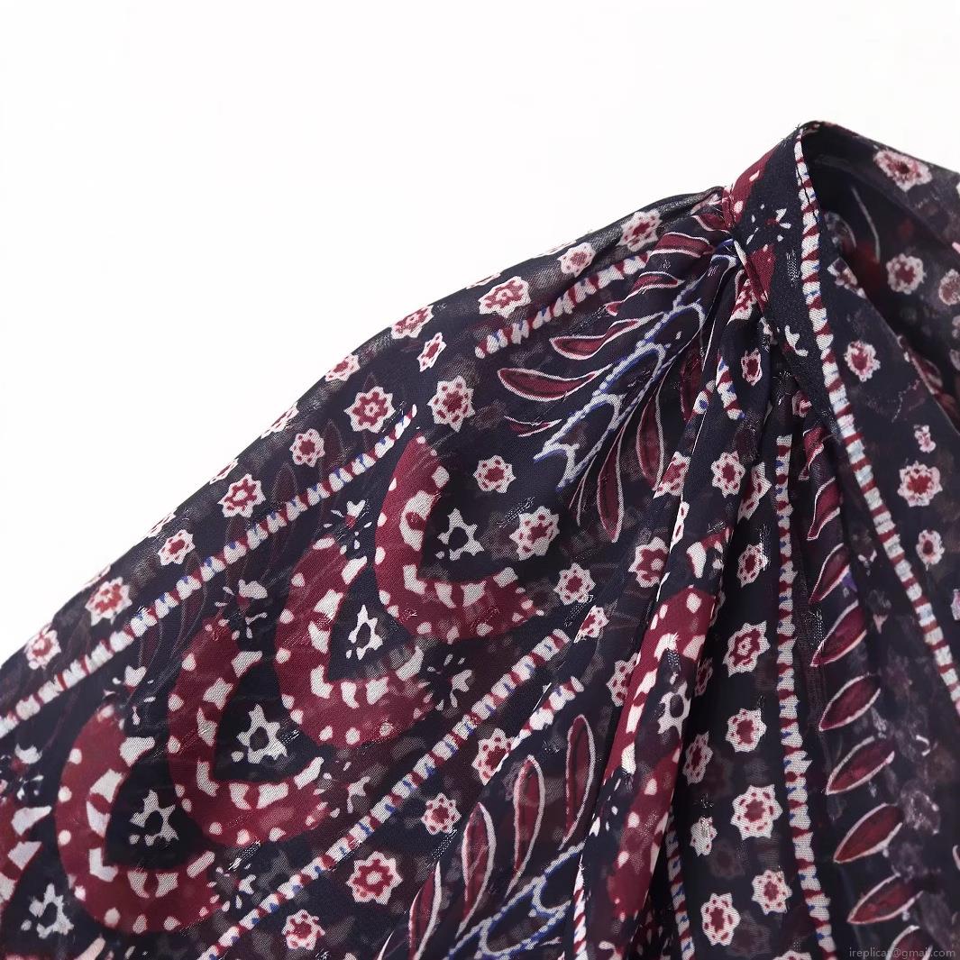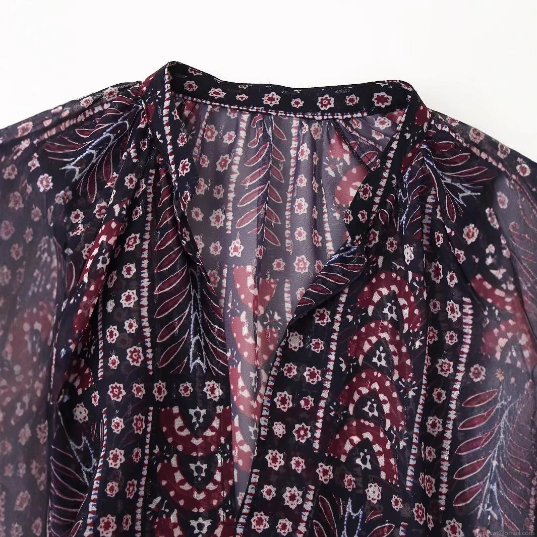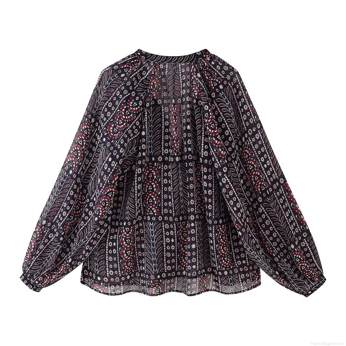 • Women Bohemian Paisley Print Chiffon Blouse Vintage V Neck Long Sleeve Loose Pullover Tops Casual Lightweight Shirt