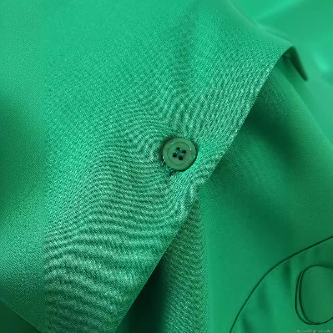 • Women Bright Green Long Sleeve Shirt Loose Oversized Blouse With Pocket Mandarin Collar Polyester Solid Casual Button Down Top For Streetwear