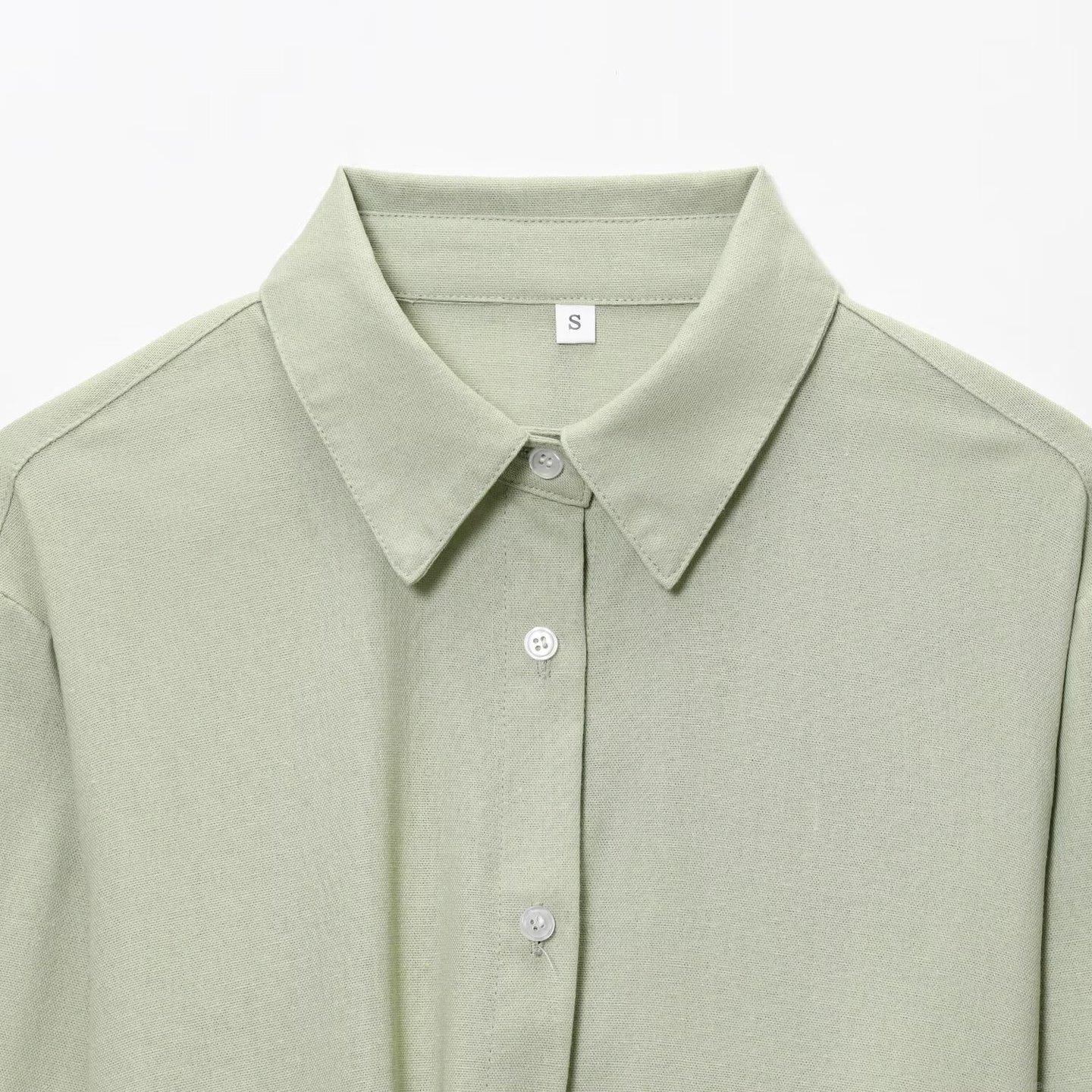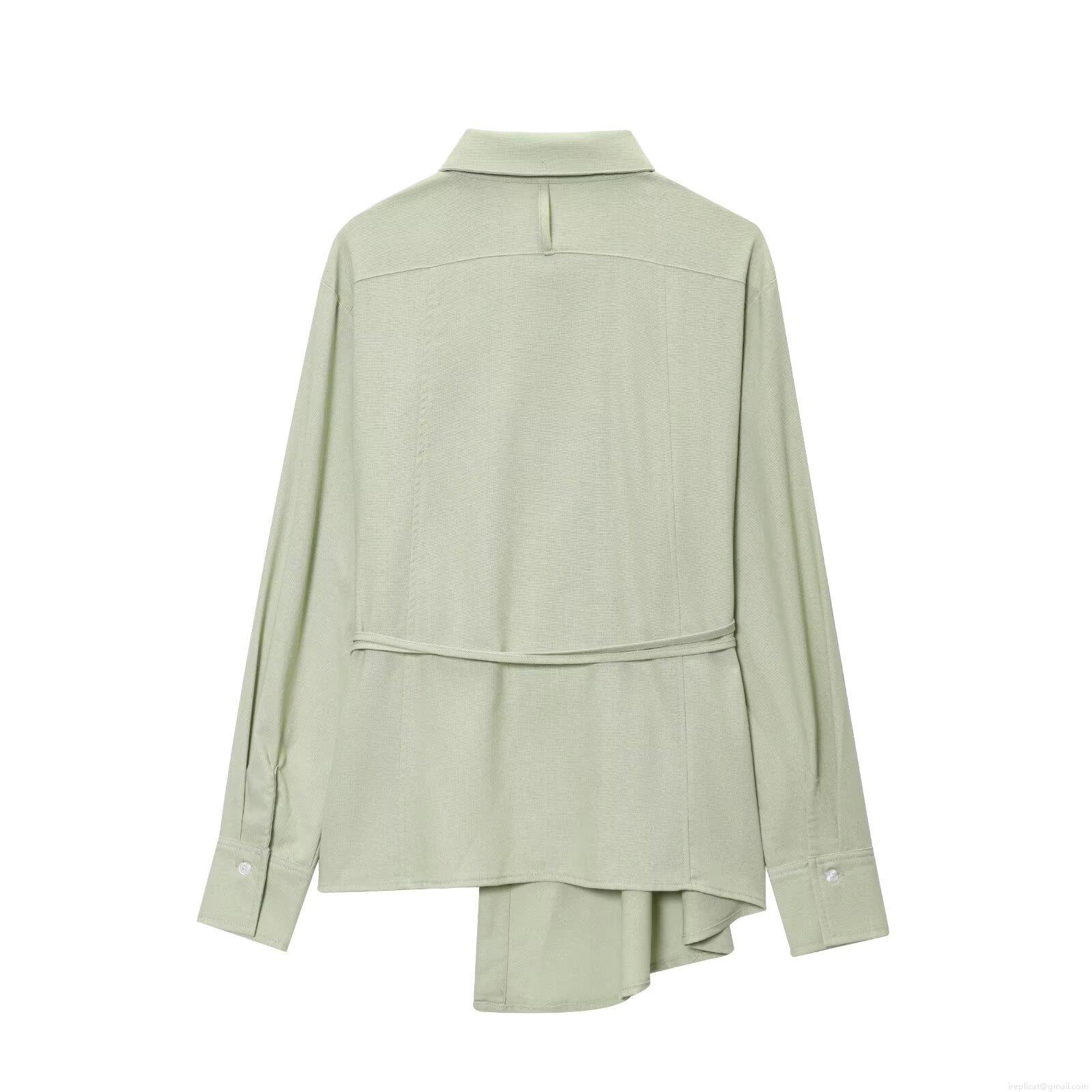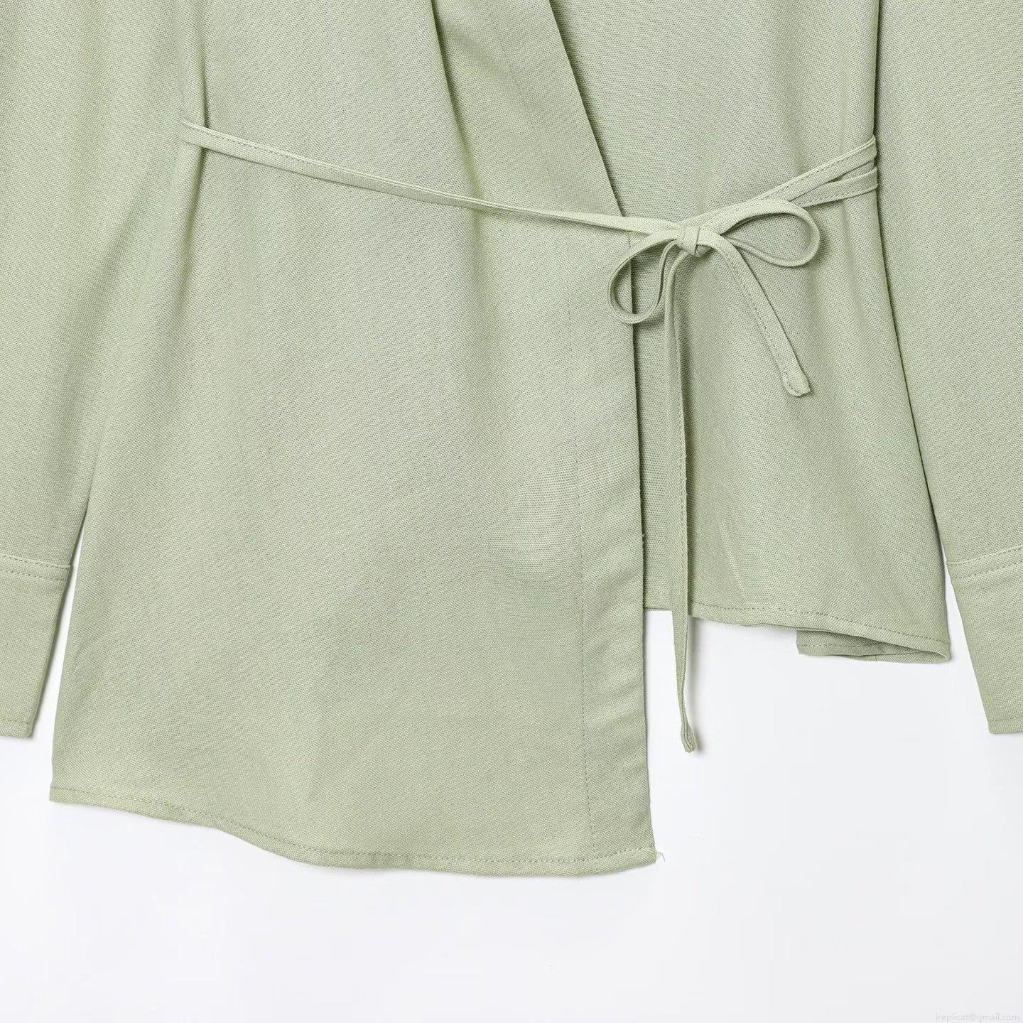 • Women Casual Cotton Linen Blouse Shirt Wrap Tie Waist Asymmetric Hem Long Sleeve Turn-down Collar Solid Color Loose Fit Elegant Tops For Office Lady