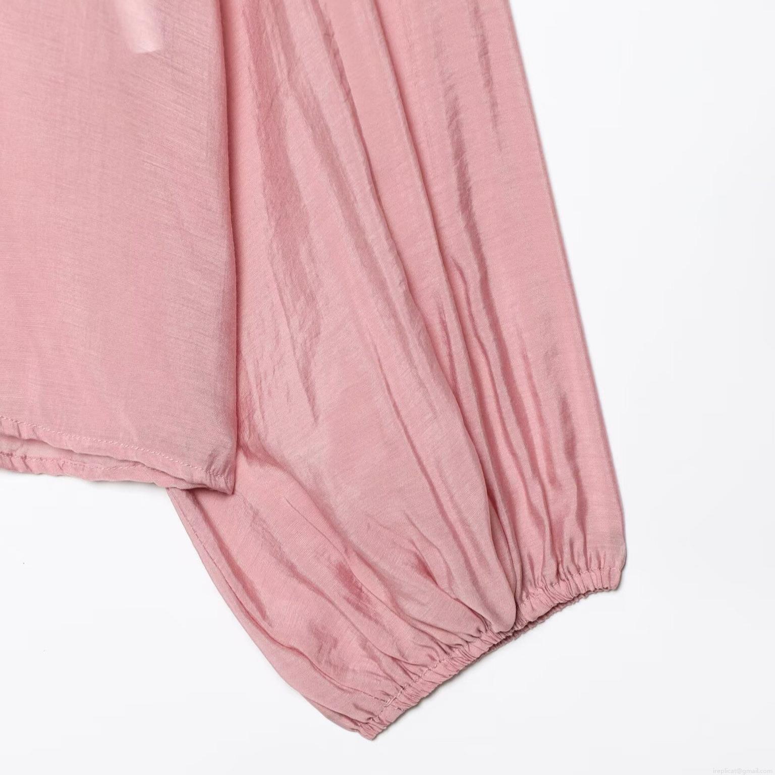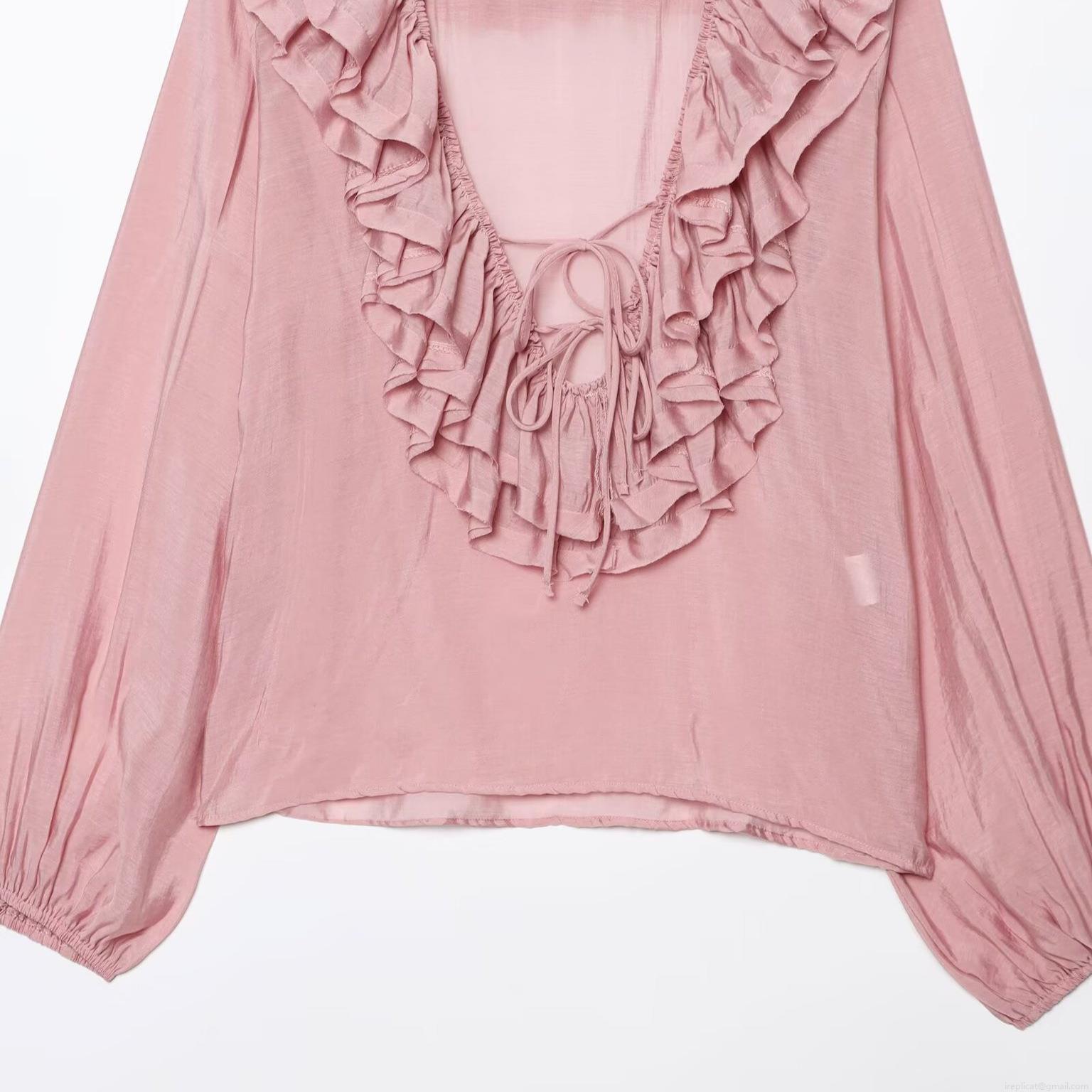 Women Casual Long Sleeve Chiffon Blouse V Neck Ruffle Tiered Solid Color Loose Fit Tie Neck Fashion Summer Shirt For Ladies